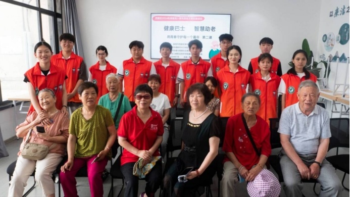 7月3日上午,康养与护理学院蓝叮咚“健康巴士”志愿服务队至光明路社区开展第三次“朝夕相伴”智慧助老志愿服务。
