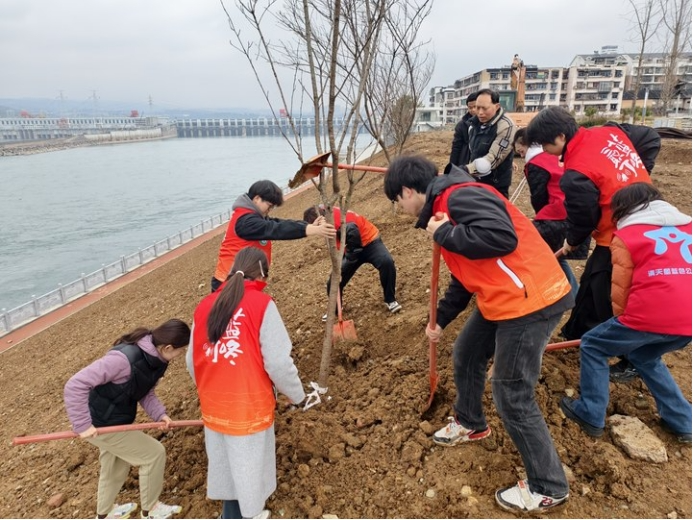 “树有点歪,往右边扶一点。”“蓝叮咚”们与来自各行各业的志愿者们并肩作战,挥锄挖坑,扶树培土,在临江步道种下了寓意希望与生命力的树苗。汗水与泥土交织,每一个人的脚底板上都沾上了厚厚的泥巴,那一刻,志愿者们深刻体会到了劳动的艰辛与喜悦。
