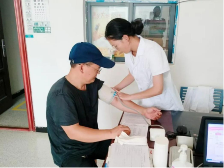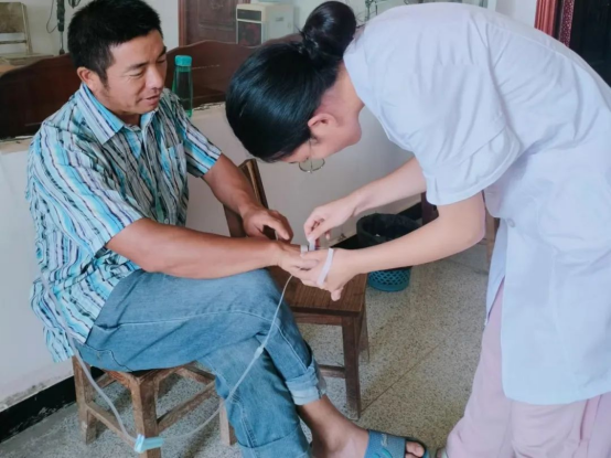 随着时间的推移,我开始参与到为村民量血压、测血糖等基础的护理工作中。记得有一次,一位老奶奶前来测量血压,她紧张地看着我,眼中充满了担忧。我用方言和她交谈告诉她不要紧张,当告诉她血压正常时,她脸上露出了如释重负的笑容,热情的回应着我的那一刻,我真切地感受到了自己工作的价值。