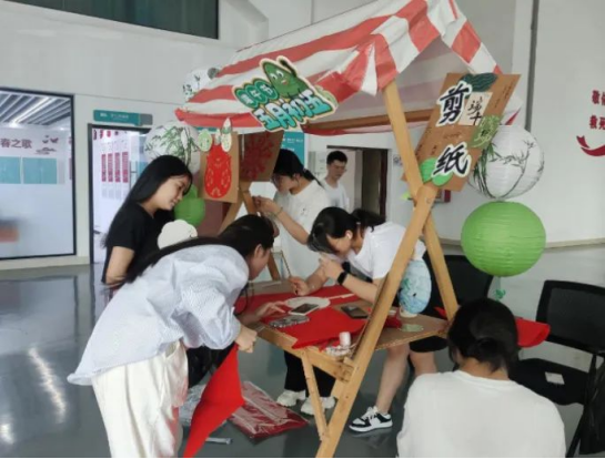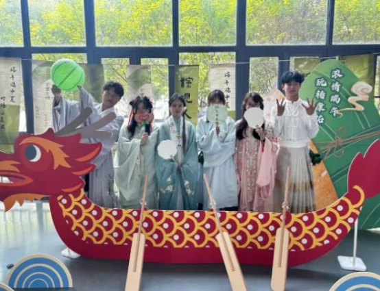 端午节,作为中国四大传统节日之一,每年农历五月初五如期而至。这一节日承载着深厚的文化内涵和丰富的民俗活动,凝结着始终不变的爱国情怀。为传承和弘扬传统民俗文化,康佑社区特开展“传承端午习俗 涵养家国情怀”端午节主题文化活动。现场设置8个摊位,分别是编制五色绳、制作艾草香囊、编竹舟、剪纸、写福牌、射五毒、沐兰汤端午特色摊位,还有漆扇体验摊位,现场充满着艾草的香气和浓浓的节日氛围。同学们纷纷打卡,通过回答端午相关小问题获取活动体验,充分体验传统文化的魅力。