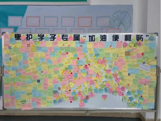 通过书写加油便利贴的方式,进行心理诉说,同时也展示出了来自“陌生人”间的互助友爱,为康养学子带来了心灵间的温暖。