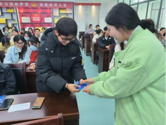 比赛间歇,通过现场知识问答的方式发放宣传资料及物资,提高了向现场观众参与度。
