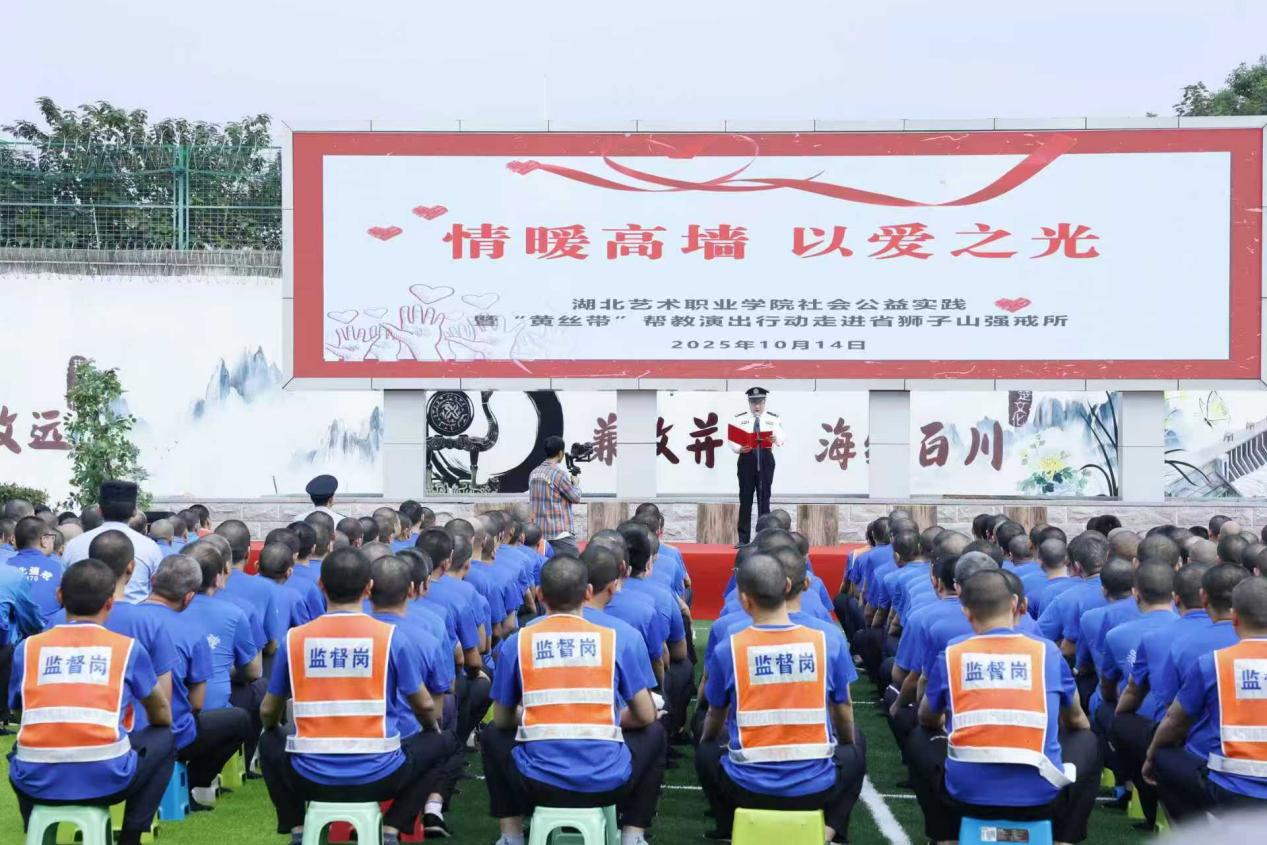 深秋时节,暖阳高照。10月14日,湖北艺术职业学院30余名师生走进湖北省狮子山强制隔离戒毒所,开展以“情暖高墙 以爱之光”为主题的“黄丝带”帮教文艺演出。一堂特殊的思政舞台剧《一堂党课之风云武汉》在高墙内上演,奏响了充满关爱与希望的时代之音。