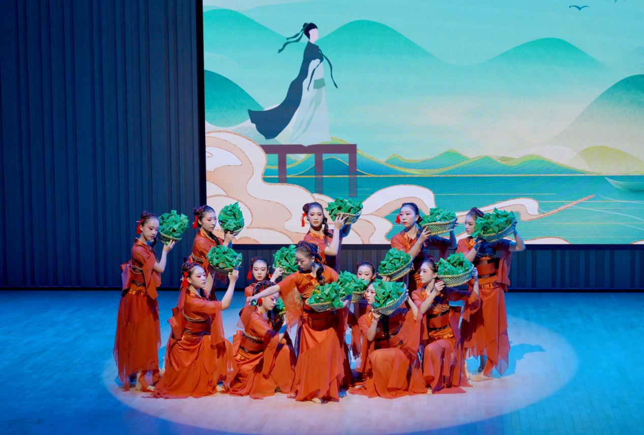 “我们想用舞蹈语言,把屈原的忠贞爱国、赤诚初心、高洁守志的价值传递给大家。”演艺学院学生闫艳艳表示。舞蹈《祭江》的表演者以柔美而富有张力的舞姿,再现百姓以粽子祭奠屈原的悲壮场景,深情歌颂了屈原不朽的爱国魂。