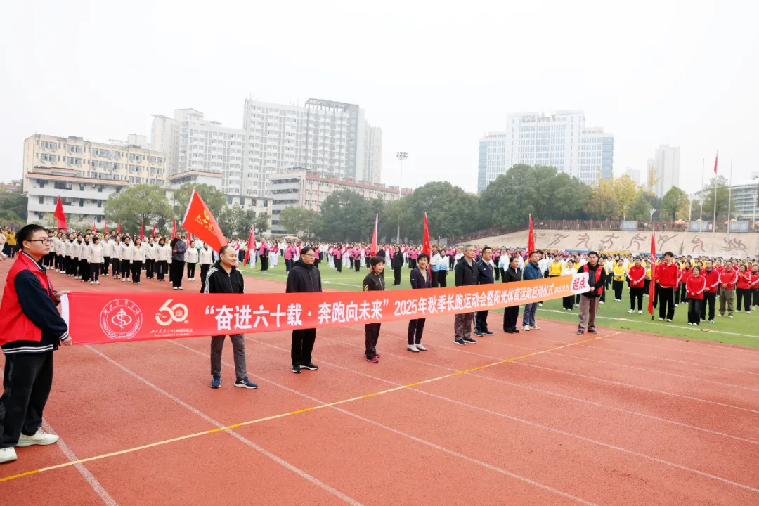 秋光正好,青春飞扬。10月29日上午,我校“奋进六十载,奔跑向未来”2025年秋季长跑运动会暨阳光体育运动启动仪式在田径运动场隆重启幕。全体在家校领导,各职能部门及学院负责人,直属附属太和医院、直属附属人民医院代表,和全校千余名师生一同用竞跑向学校六秩华诞深情献礼。