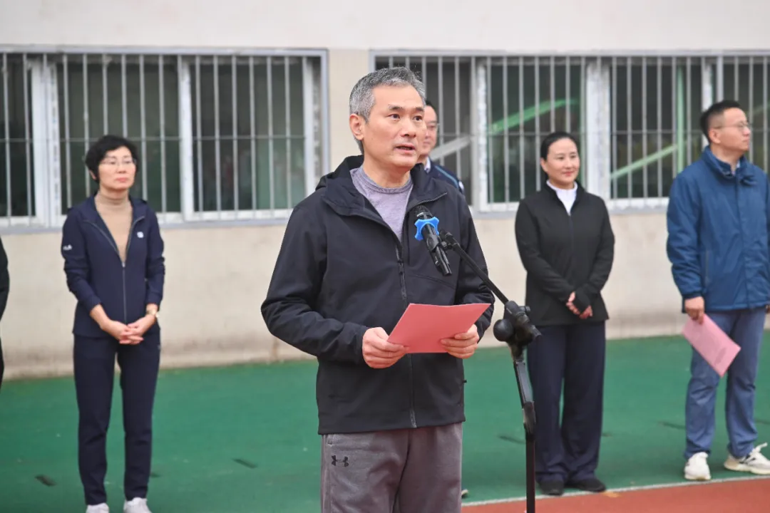 校党委书记郑丹凤宣布运动会开幕。随着一声响彻云霄的发令枪响,各方阵队伍精神抖擞,沿着环校路线奔跑前行,形成一道流动的风景线,将运动的欢乐播撒在校园的每个角落。