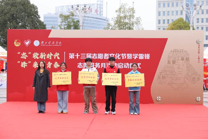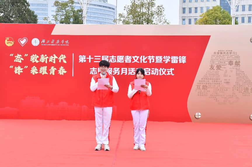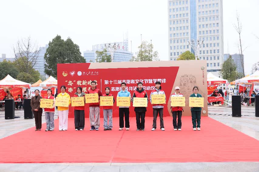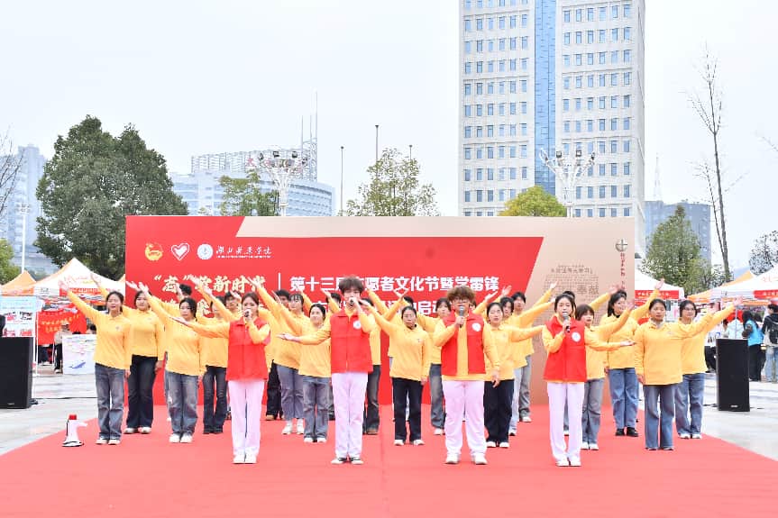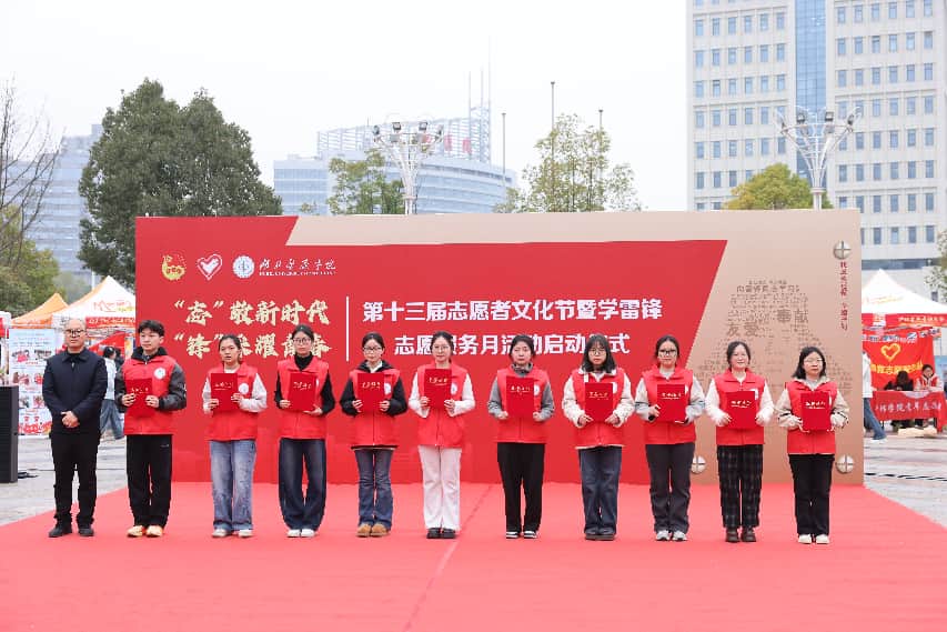 3月4日,在第63个“学雷锋纪念日”、第27个“青年志愿者服务日”到来之际,我校第十三届志愿者文化节暨2026年学雷锋志愿服务月活动在文明广场正式启动。学校相关职能部门老师、各二级学院分管学生工作负责人、师生志愿者代表及十堰市慈善总会、茅箭区人民医院等多家单位志愿服务团体齐聚一堂,共同参加活动。