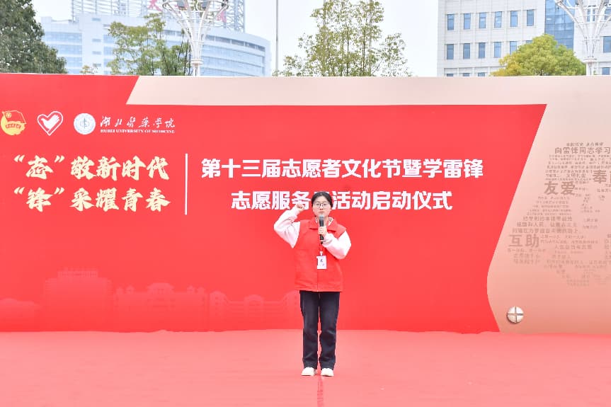 伴随着大学生艺术团的深情领唱,各学院志愿者代表齐声高唱《学习雷锋好榜样》,启动仪式正式拉开帷幕。仪式上,“十堰好人”、校青协青年志愿者代表郑丹美同学带领全体志愿者重温志愿者誓词,铿锵誓言响彻广场。