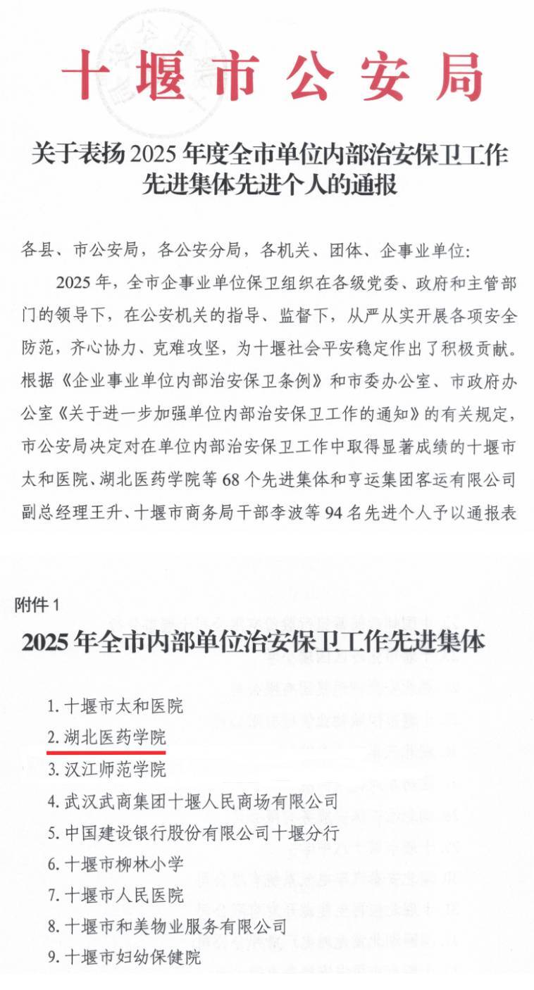 近日,接市局文件,我校凭借扎实的安全管理基础、严密的治安防控体系及系统的毒品预防教育工作,荣获“2025年度全市禁毒工作成绩突出集体”“2025年全市内部单位治安保卫工作先进集体”两项荣誉。此次全市共评选出10个禁毒工作成绩突出集体、68个内部单位治安保卫工作先进集体,我校能同时获评,既是对我校安全稳定工作和禁毒宣传教育成效的高度认可,更标志着学校“平安校园”建设迈上新台阶。