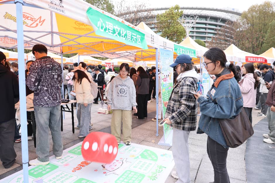 开幕式现场的特色文化展位区同样热闹非凡。社团文化、心理文化、民族文化等展示区依次排开,文创作品、手作好物、书法绘画、趣味体验应有尽有。师生们纷纷走入各个展位,在逛展、体验、互动中沉浸式感受多元文化的魅力,定格春日校园的美好瞬间。(审核 邱爽)