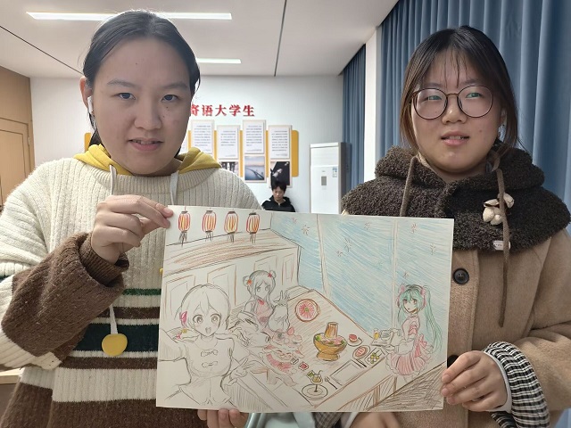 活动尾声,现场集中展示了冬至主题绘画作品,营造出文化内涵与情感温度交融的氛围。主持人对活动进行总结,鼓励同学们从传统节气中吸收文化养分,从国家叙事中坚定专业初心。