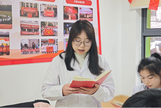 在经典诵读环节,来自护理学院、医学院、口腔医学院、卫生技术学院的学生代表依次诵读了书中各自最受触动的经典片段。同学们以饱满的情感、激昂的语调,生动诠释了红色故事中的真挚情怀与崇高信念。在交流分享环节,学子们结合所学专业畅谈读书体会。同学们表示,《可爱的中国》中革命先辈不畏艰难、无私奉献、为国为民的精神内核,与医学“健康所系、性命相托”的职业誓言高度契合。在今后的学习生活中将以红色精神为指引,扎实锤炼专业技能,把个人成长与国家医疗卫生事业发展紧密结合,用实际行动守护人民健康。