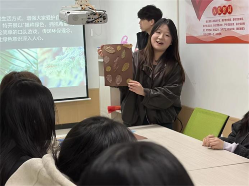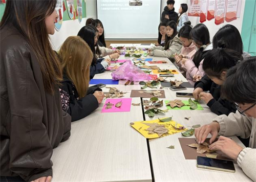 活动中,主持人围绕生态文明与低碳生活进行主题分享,并巧妙融入趣味语言游戏,引导同学们在欢声笑语中学习环保知识,让绿色理念在互动中入脑入心。同学们化身自然艺术家发挥想象力与创造力,将一片片普通的树叶拼接成蝴蝶、小动物等生动形象的手工作品。大家在与自然的亲密接触中体会到了变废为宝的乐趣,更深化了对珍惜资源、保护环境的理解与认同。