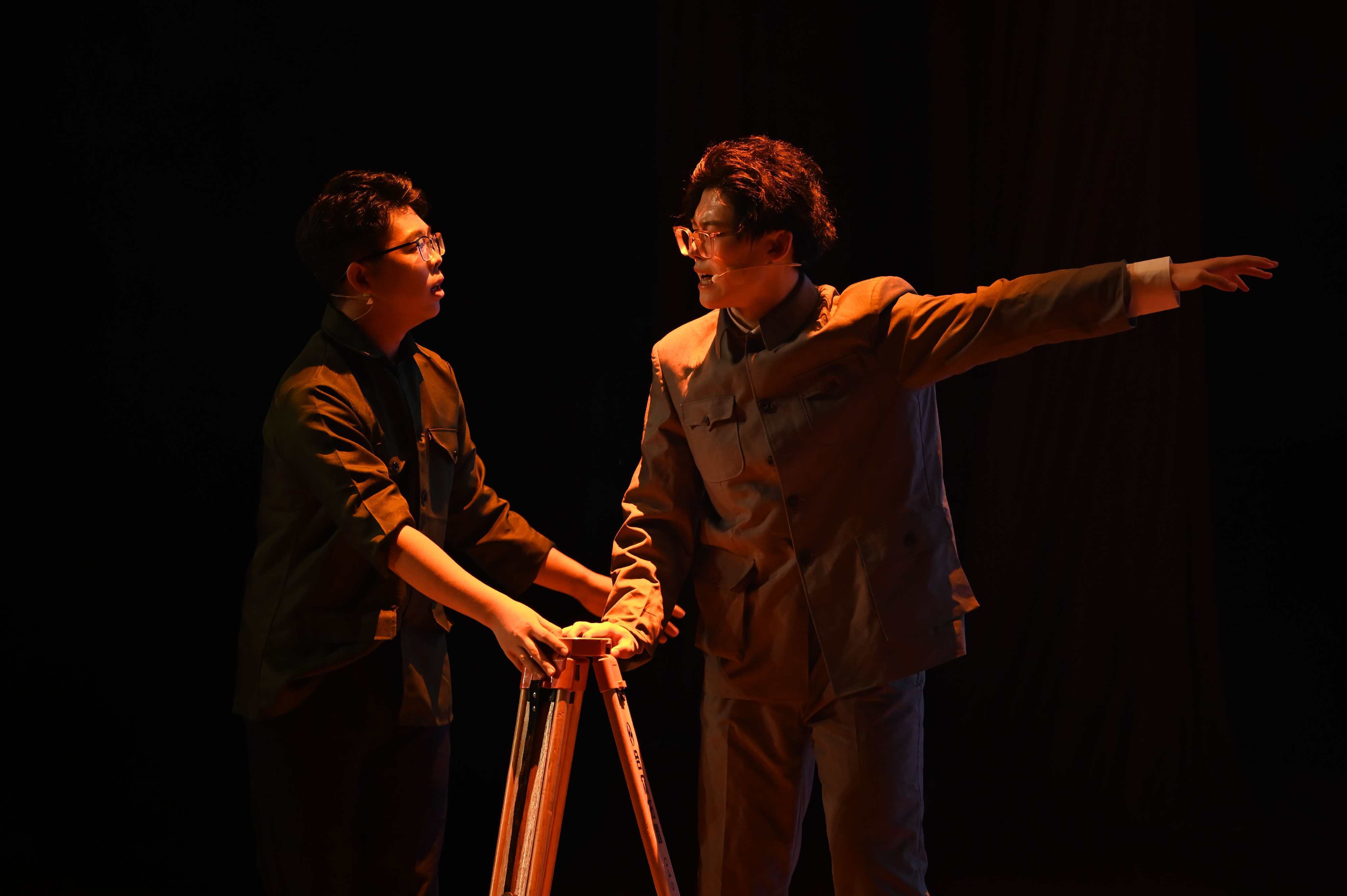 从足迹到舞台,实地溯源铸魂,话剧进行了3.0版焕新升级。在学校党委的支持下,本次展演之前,学校共青团开展了“追光之旅”系列实践活动。校领导与参演学生开展观演交流会,勉励大家以王大珩院士为榜样,在强国建设中贡献哈理工青年的智慧与力量;校领导带队赴北京拜访王大珩院士家属,聆听其求学、科研与育人的感人故事;校团委邀请专家、校友召开剧本围读会,深入梳理王大珩院士事迹、精心打磨剧本;艺术团师生前往长春理工大学、中国光学科学技术馆、王大珩故居,追溯其投身光学事业的初心与坚守。参演学生代表分享了实践与排演过程中的深刻体会。经济与管理学院2023级学生魏昊谈到,“在拜访大珩故居之后,我再次饰演时,会模仿先生握笔的姿势、说话的语气和神态,希望让观众感受到更真实、更亲切的大珩校长形象。” 自动化学院2024级学生皇甫骞表示,“实地走访让我真切体会到科学家坚守的 意义,科研不是空想,而是脚踏实地、持之以恒的奋斗,激发了我对专业学习的兴趣。”