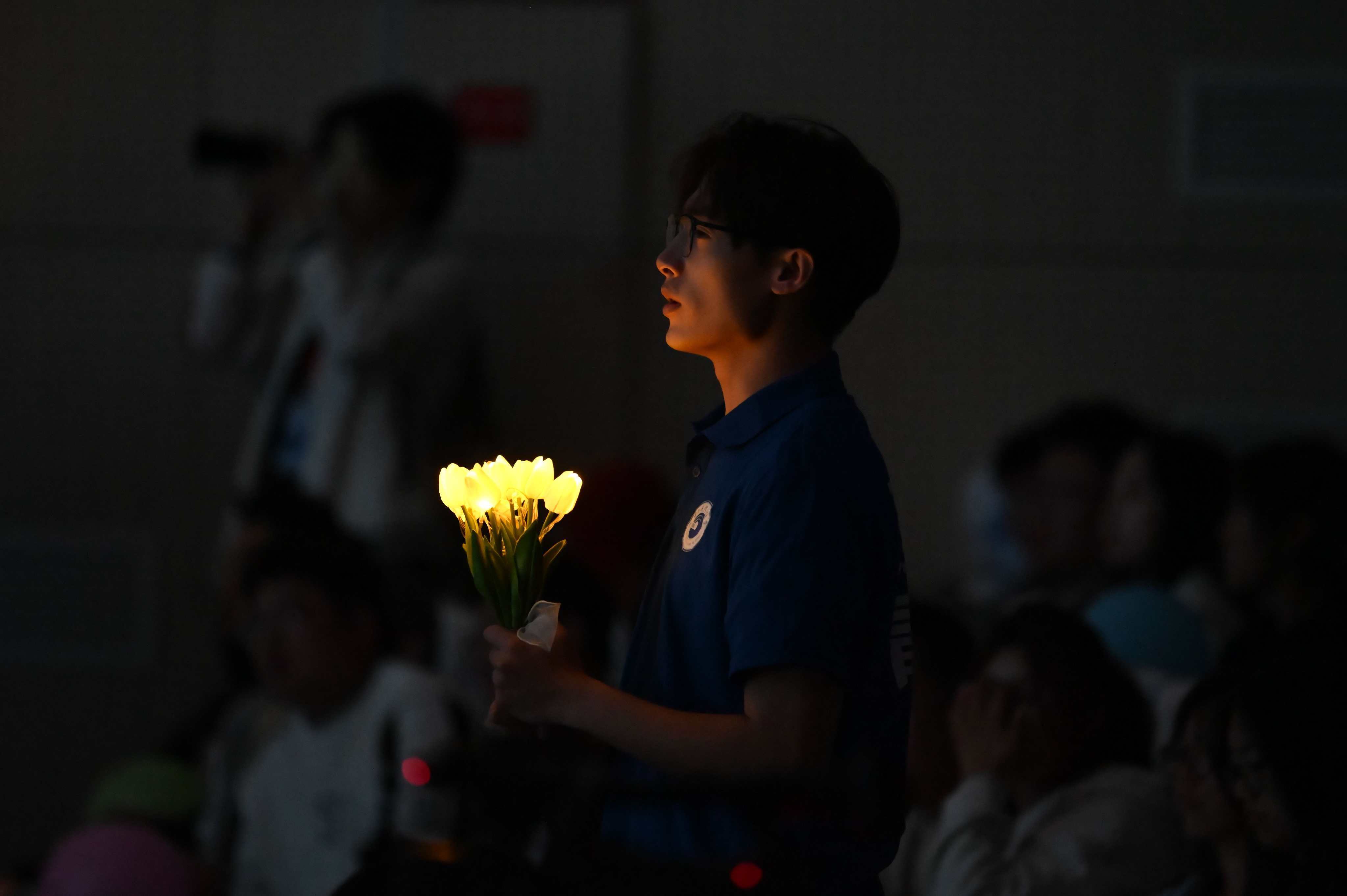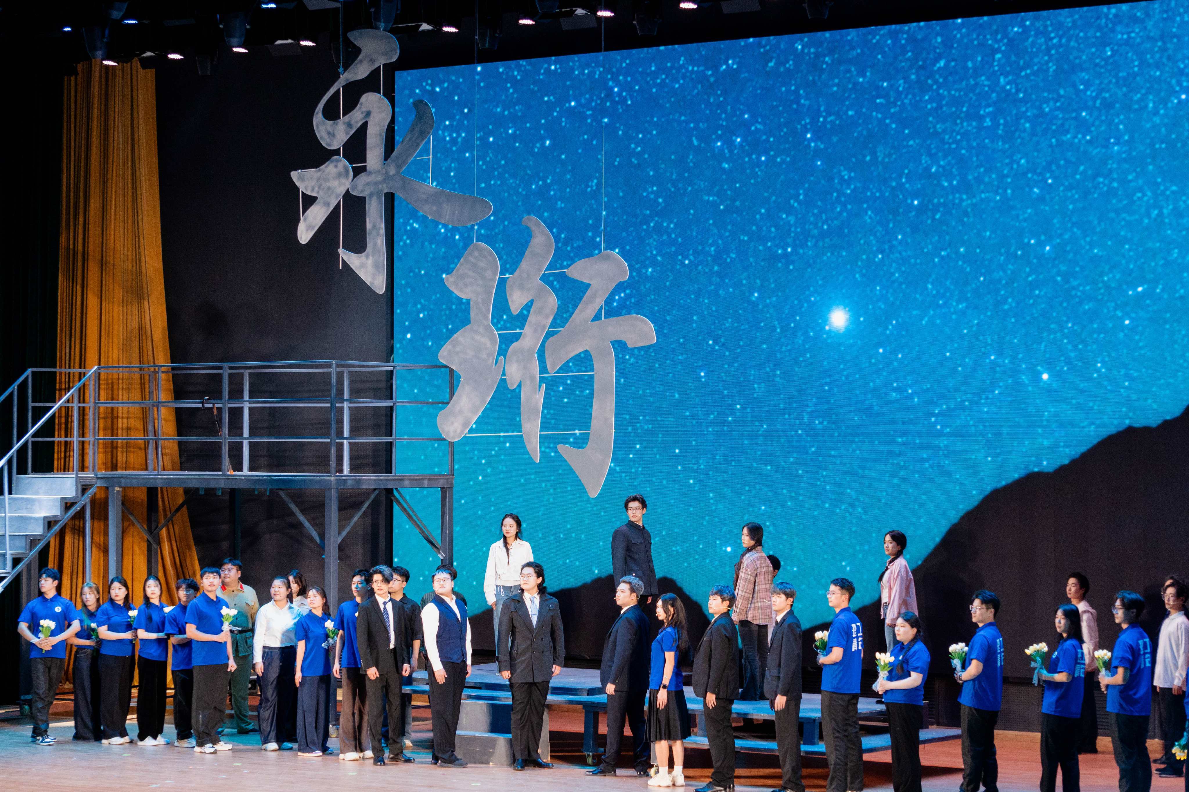学校领导与师生、校友代表观看话剧《永“珩”不灭的光》现场