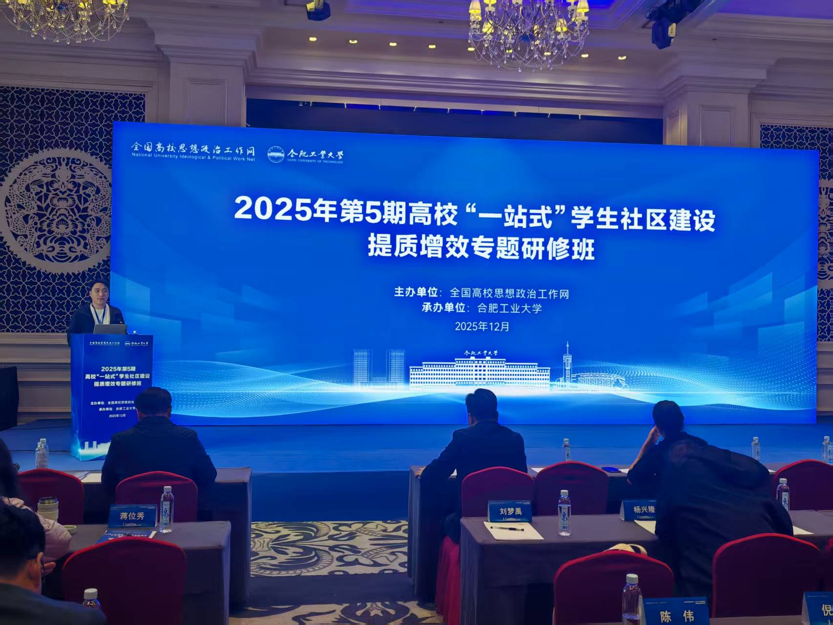 12月2日至12月5日,高校“一站式”学生社区建设提质增效专题研修班在合肥工业大学举办。会议由全国高校思想政治工作网主办,来自29个省市自治区141个高校的相关教师干部、辅导员等340余名学员参加了培训。我校辅导员孙庆晨在结业仪式上做“一站式”学生社区建设经验分享。