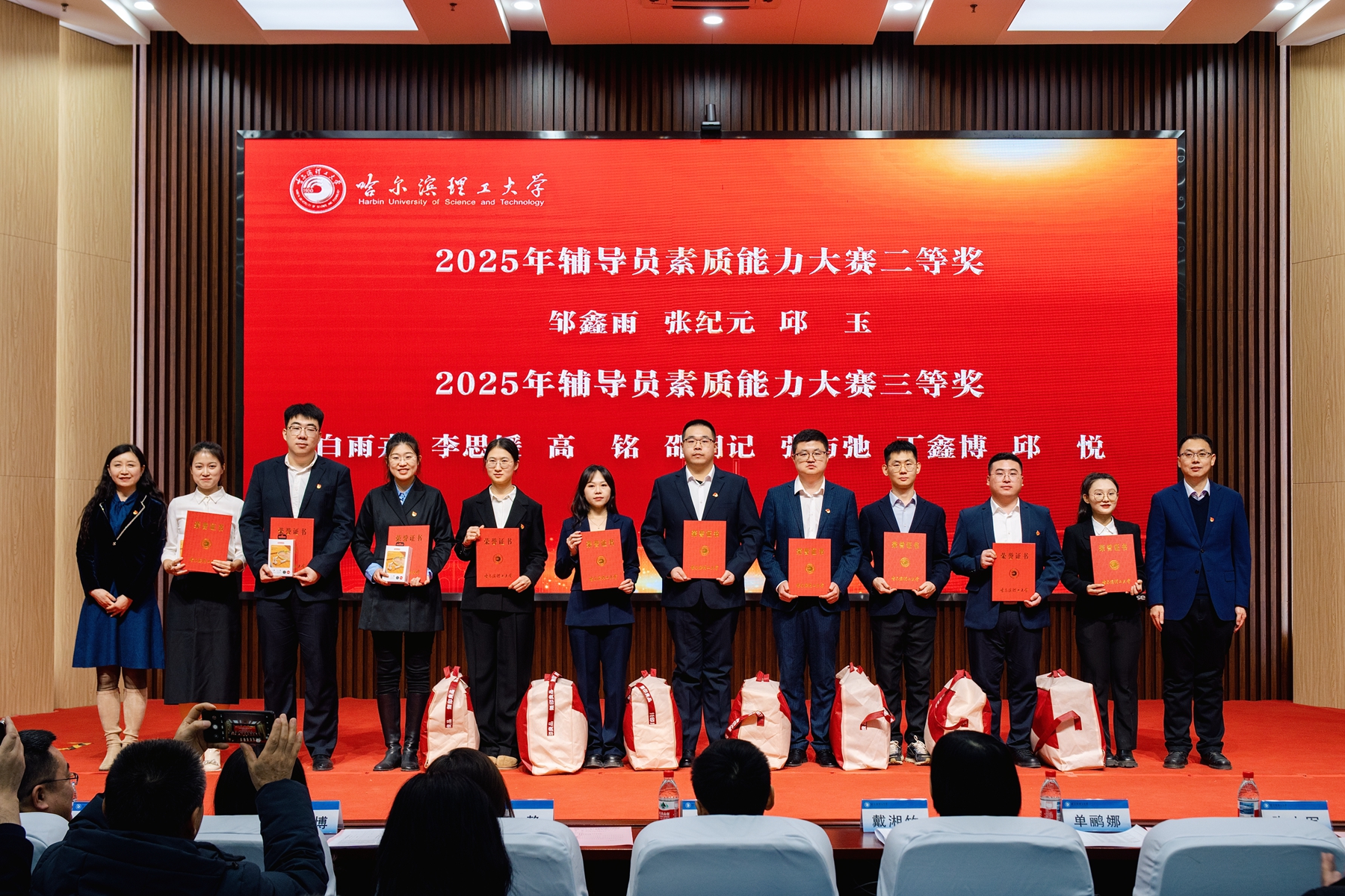 工会常务副主席单鹂娜、党委学生工作部副部长张彦坤为获得2025年度辅导员素质能力大赛二等奖、三等奖的参赛选手颁奖