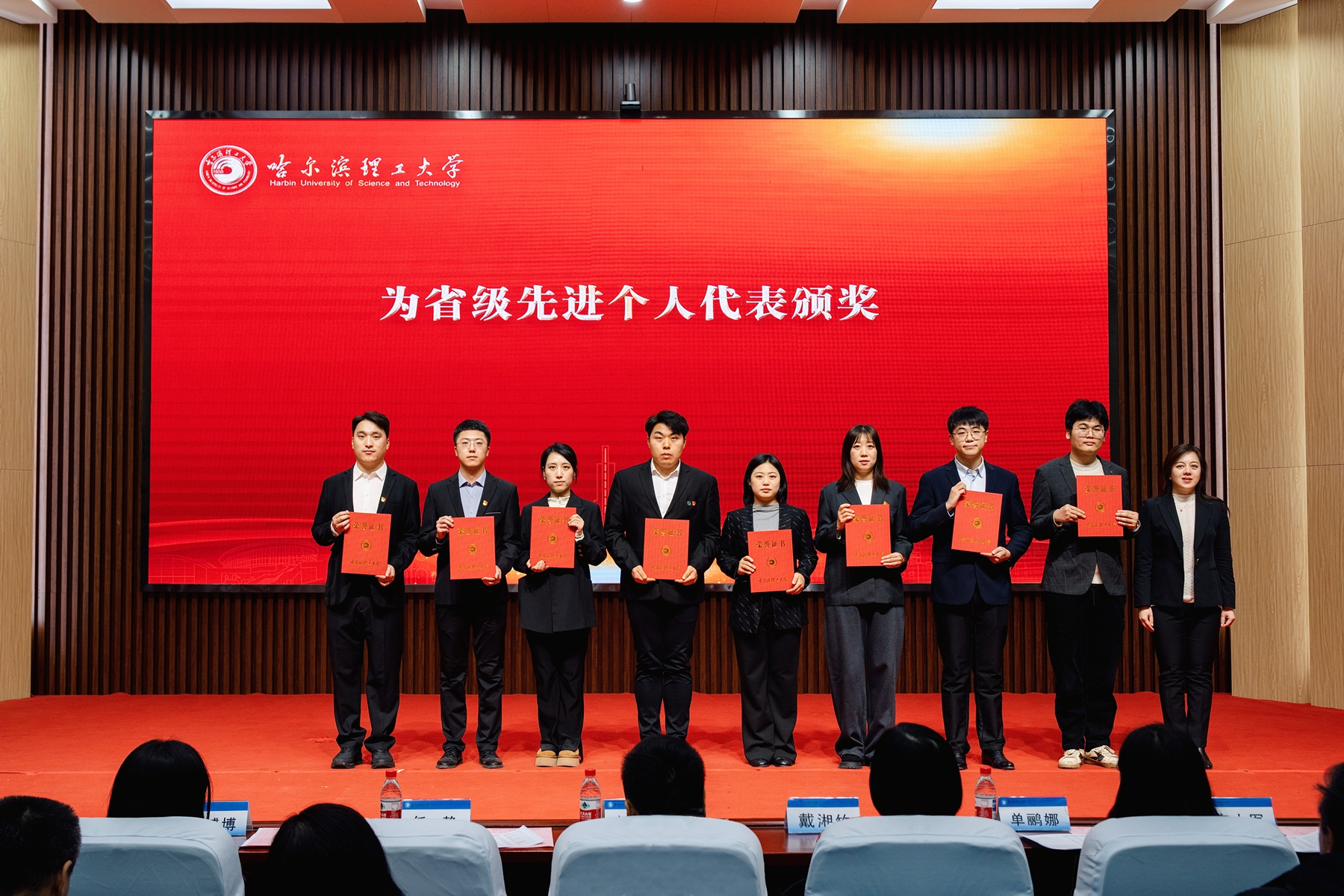 团委书记韩彧博、党委学生工作部副部长田海燕为省级先进个人代表颁奖