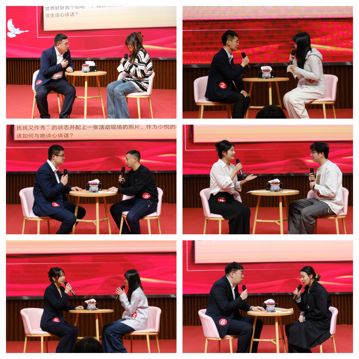 谈心谈话环节,主要考察辅导员对学生特征、学生成长成才规律的了解把握程度,对学生的教育引导能力、解决理论困惑和实际问题的能力等。设置贴近学生实际的情境,现场由参赛辅导员与随机匹配的助演学生进行面对面交流,辅导员与学生通过建立信任、疏导情绪,开展思想引领、分析存在问题、共讨解决措施等,开展了深入细致的谈心谈话。