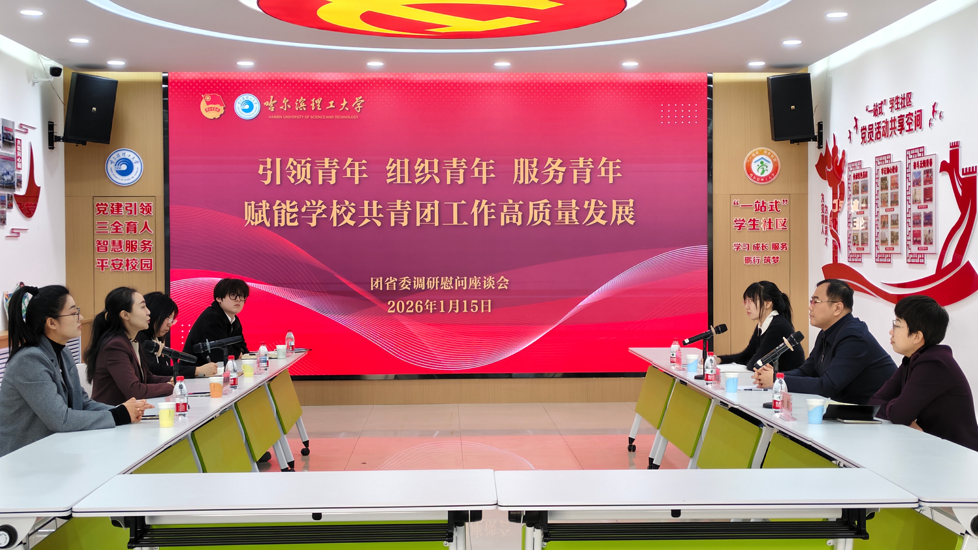 在“一站式”学生社区综合服务中心,李敬伟与留校学生面对面亲切交谈,详细询问大家的假期生活、学习安排和实际需求,为同学们送上团组织的关怀与温暖。随后,调研组召开工作座谈会,认真听取校团委及各学院团委工作汇报,重点了解我校在推进“四创”工作、搭建多元实践育人平台、打造特色“大思政”育人品牌等方面的具体做法与成效,并给予充分肯定。