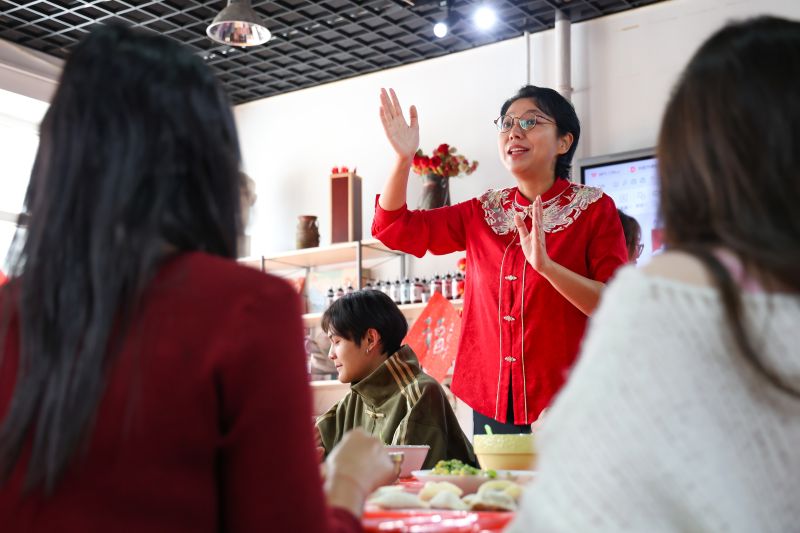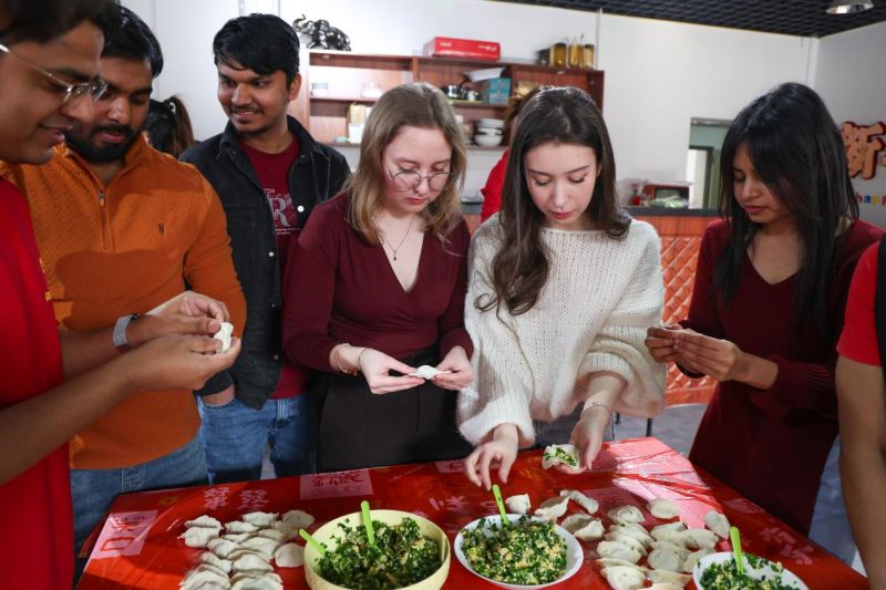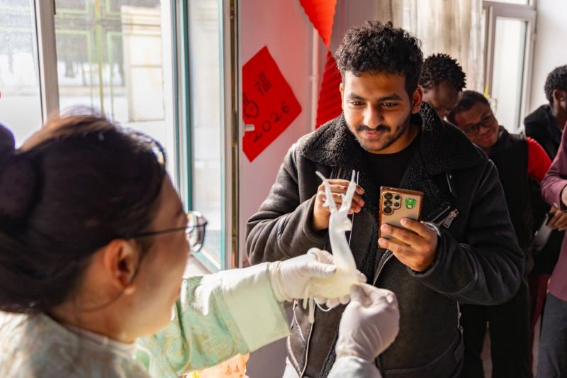 活动现场,对外汉语系张明明老师细致讲解了小年的起源及北方小年特色习俗,随后,沉浸式体验环节拉开帷幕,留学生们在老师指导下写福字、贴春联,一笔一画、一贴一粘间,感受节日的喜庆氛围。活动还邀请到专业糖人制作老师现场授课,晶莹剔透的糖丝在指尖流转,留学生们亲手制作专属糖人,解锁传统技艺的独特魅力。最后,师生围坐包饺子,欢声笑语中,热气腾腾的饺子传递出家的温暖,也让留学生们真切体会到中国“团圆”的真谛。