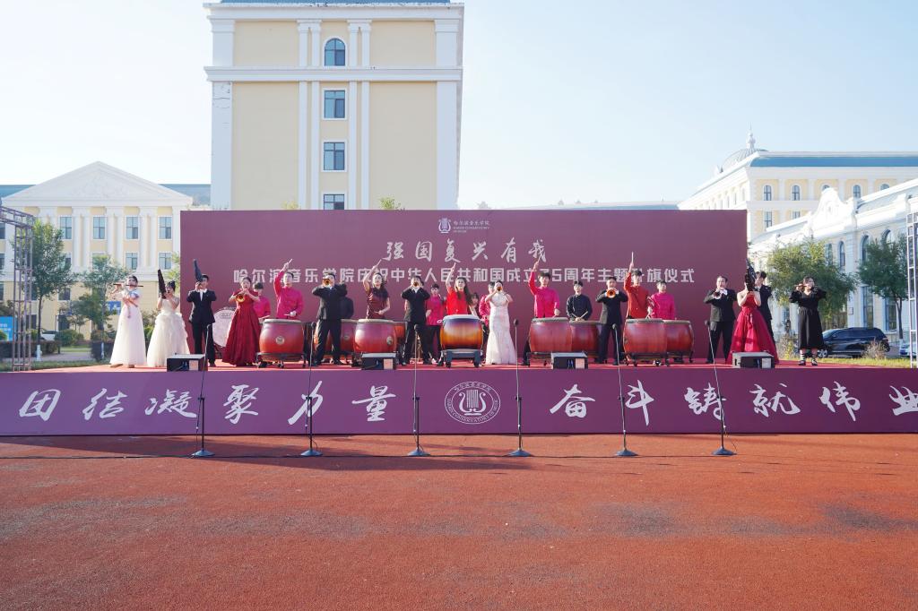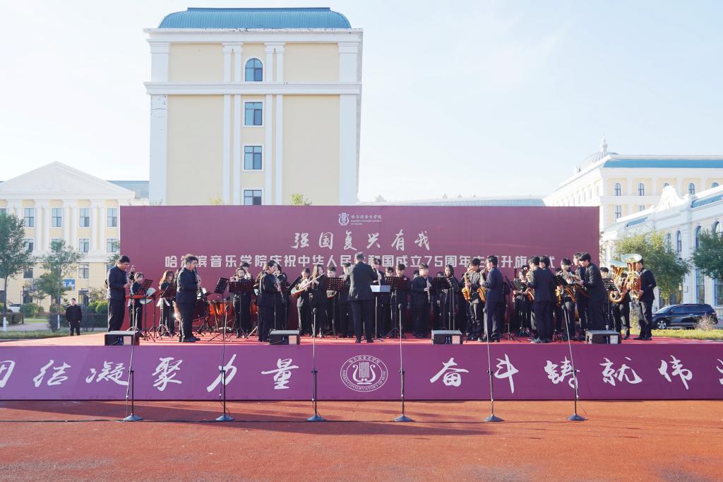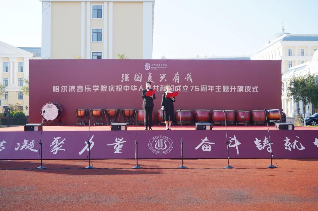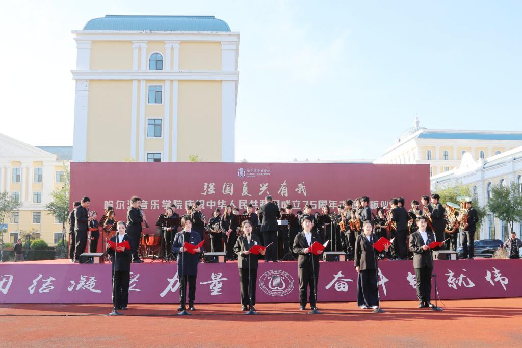 欣逢盛世,当不负盛世。本次升旗仪式是哈音师生庆祝中华人民共和国成立75周年的深情献礼,是一堂生动的爱国主义教育实践课,激励全体师生昂扬向上、奋发有为,在新时代、新征程中建功立业;激发广大学生的爱国热情,在强国建设、民族复兴新征程中贡献青春力量。