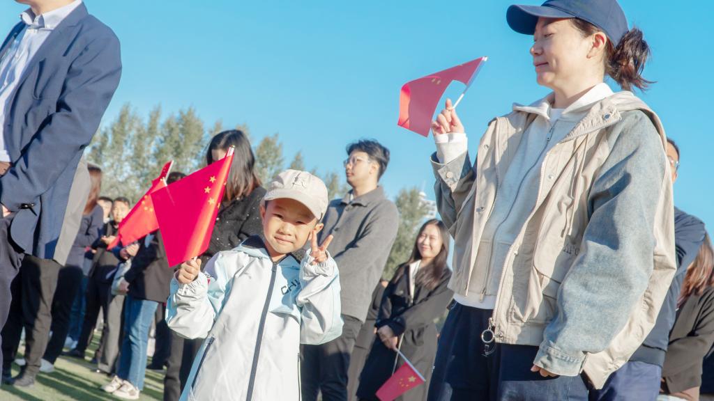 升旗仪式的最后,全体师生挥动手中的国旗,齐声合唱《歌唱祖国》,用歌声祝福祖国繁荣昌盛。