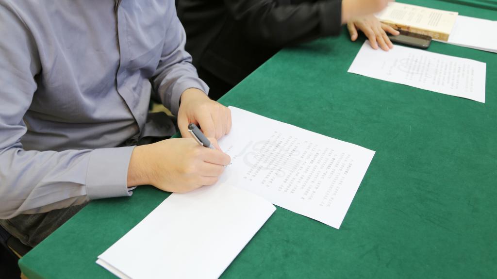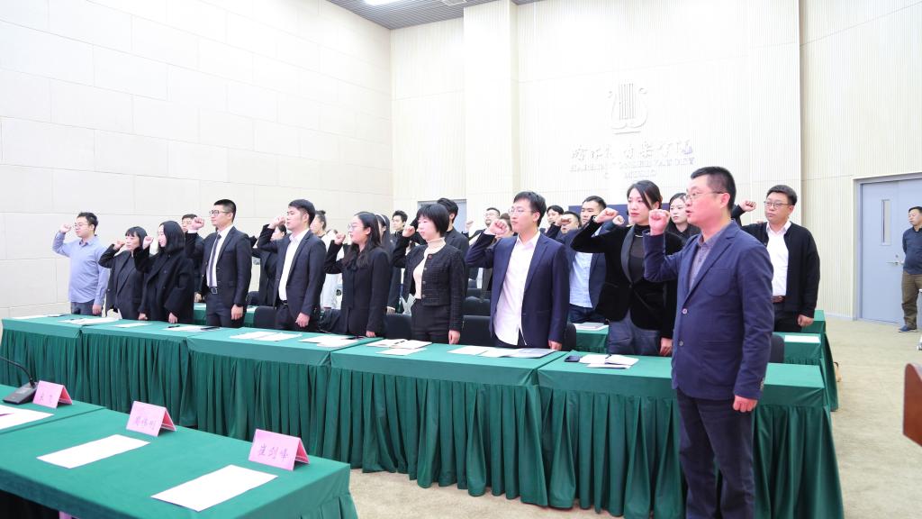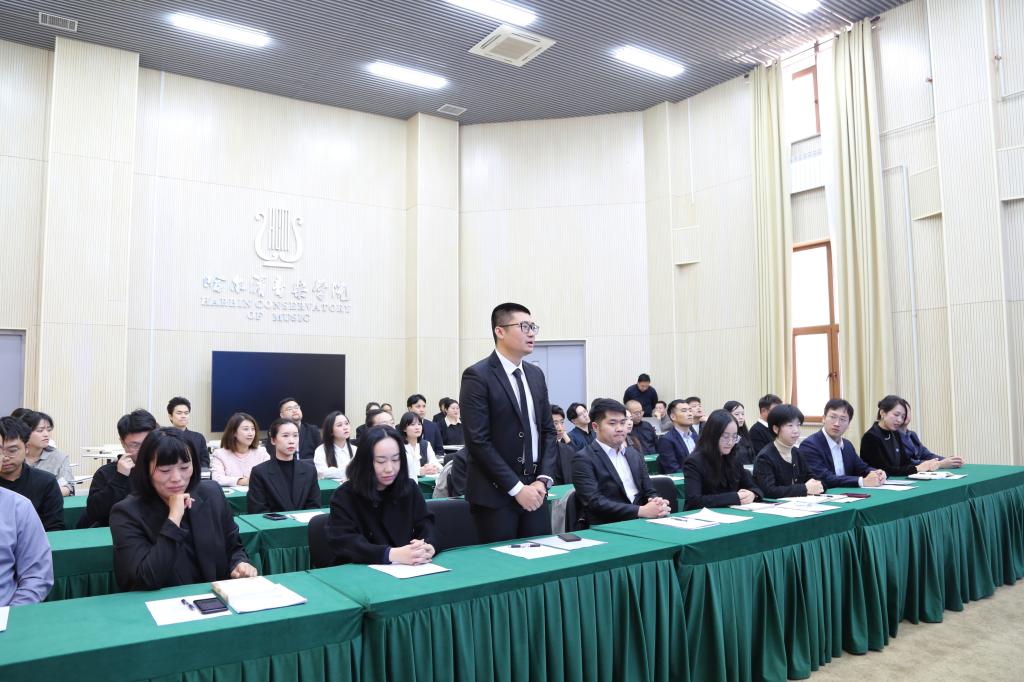 全体新入职教师集体签订《哈尔滨音乐学院教师师德承诺书》,并在作曲系副主任崔哲教授领誓下,面对国旗,庄严宣誓。