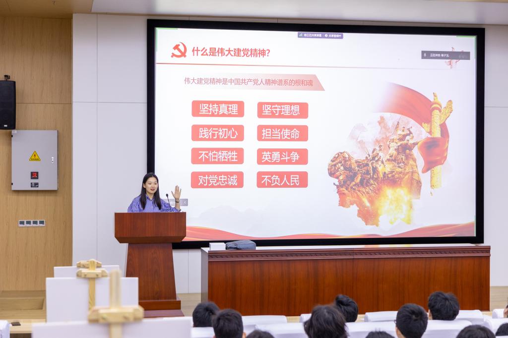 李星老师的以《回望历史问初心,千秋伟业谁抗鼎》为题,她通过引用历史图片、二十大报告金句、影视混剪等资料,重点宣讲了党在新征程上举什么旗、走什么路、以什么样的精神状态、朝着什么样的目标继续前进等重要内容,生动详实地解读了党的二十大报告主题的精神实质与丰富内涵,鼓励学生立志做有理想、敢担当、能吃苦、肯奋斗的新时代好青年,把青春献给祖国,为全面推进中华民族伟大复兴而团结奋斗。