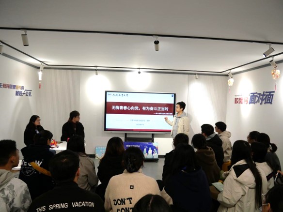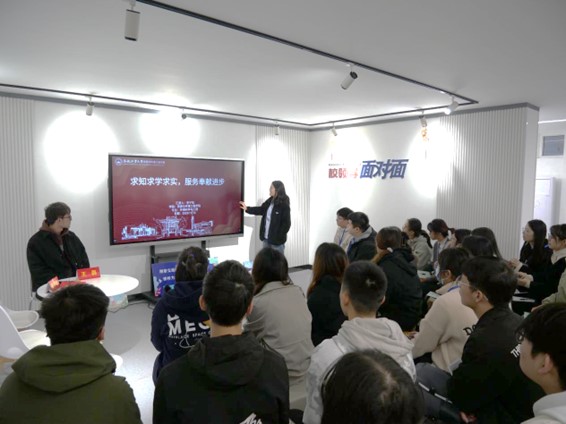 交流会围绕“朋辈交流促学业,榜样力量助启航”主题展开。秦皓与同学们分享了他本硕博阶段的生活,他强调“知行合一”的必要性,建议同学们锤炼自身本领,在投身科研工作的同时积极为社会做贡献,充分发挥党员带头模范作用。王磊从“志在科学,愿在奉献”的角度向同学们分享了经验、心得。他通过一系列的志愿服务经历展示了一名青年研究生应有的责任和担当,鼓励同学们在把握好研究生生涯的同时发挥专业特长积极投身志愿活动,弘扬“研必以报效国家为己任,学必以服务人民为荣光”的科技志愿服务精神。李子怡从学习和实践方面与同学们进行交流。她建议同学们抓好专业学习的基本任务,同时积极尝试学生工作,在实践中求真务实,做一名朝气蓬勃的青年奋斗者。最后提问环节,同学们敞开心扉,就学习生活中的困惑向分享嘉宾进行提问,三位优秀学生代表也一一细心解答,给出了具有指导意义的建议。时间在一问一答的交流中飞逝,同学们都纷纷表示受益匪浅。