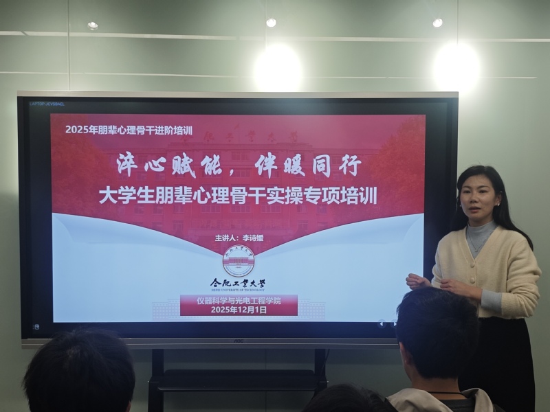 为强化心理骨干队伍建设,探索心理育人多元路径,12月1日晚,仪器学院在2号楼学生社区沙龙空间举办心理骨干专题培训。2024级全体心理委员参会,李诗媛老师全程指导并点评。