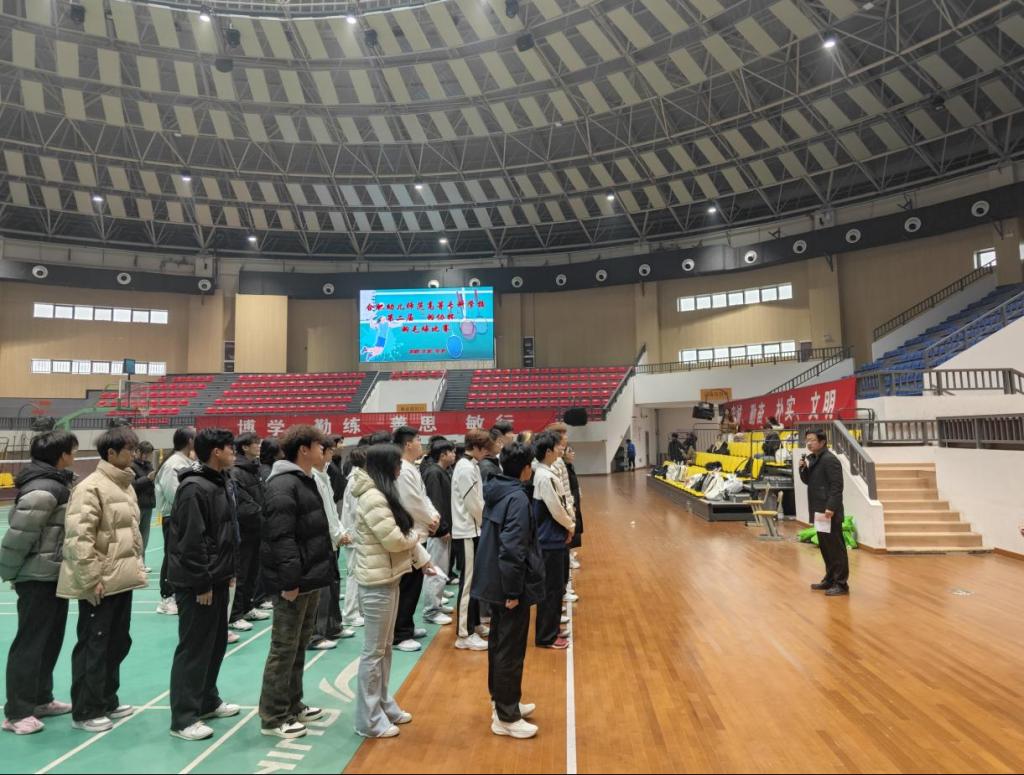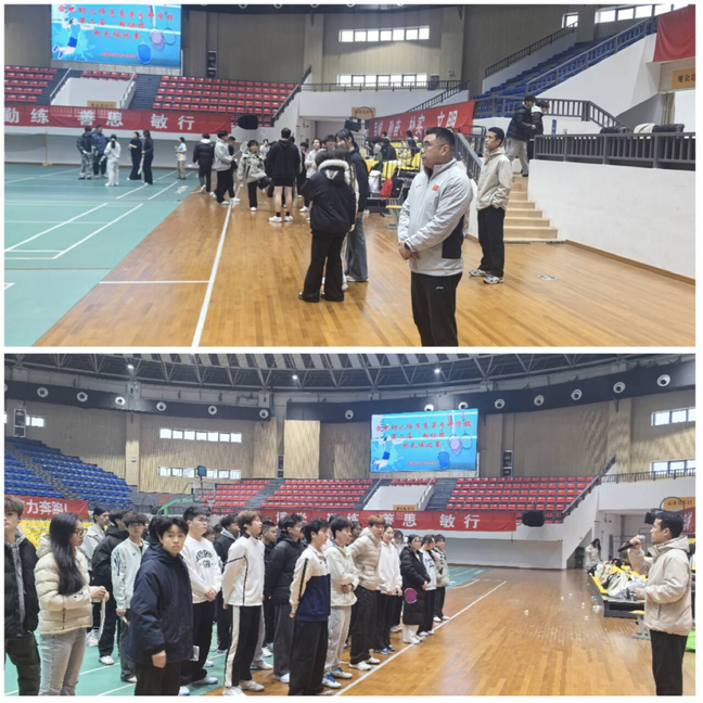 作为学校年度体育品牌赛事之一,本届比赛精心设置了男单、女单和混合团体三大项目。赛事旨在响应“全民健身”号召,切实推动校园体育文化建设,让学生在紧张的学习之余,能够在运动场上挥洒汗水、释放压力,享受运动的乐趣,从而促进身心全面健康发展。开幕式上,谭景宝热情致辞,勉励全体运动员发扬“顽强拼搏、团结协作”的体育精神,赛出风格、赛出水平,充分展现当代大学生的青春活力与昂扬风貌。他特别强调,体育运动不仅是强身健体的有效途径,更是锤炼意志品质、塑造团队精神、培养规则意识的重要课堂,鼓励同学们养成终身锻炼的良好习惯。