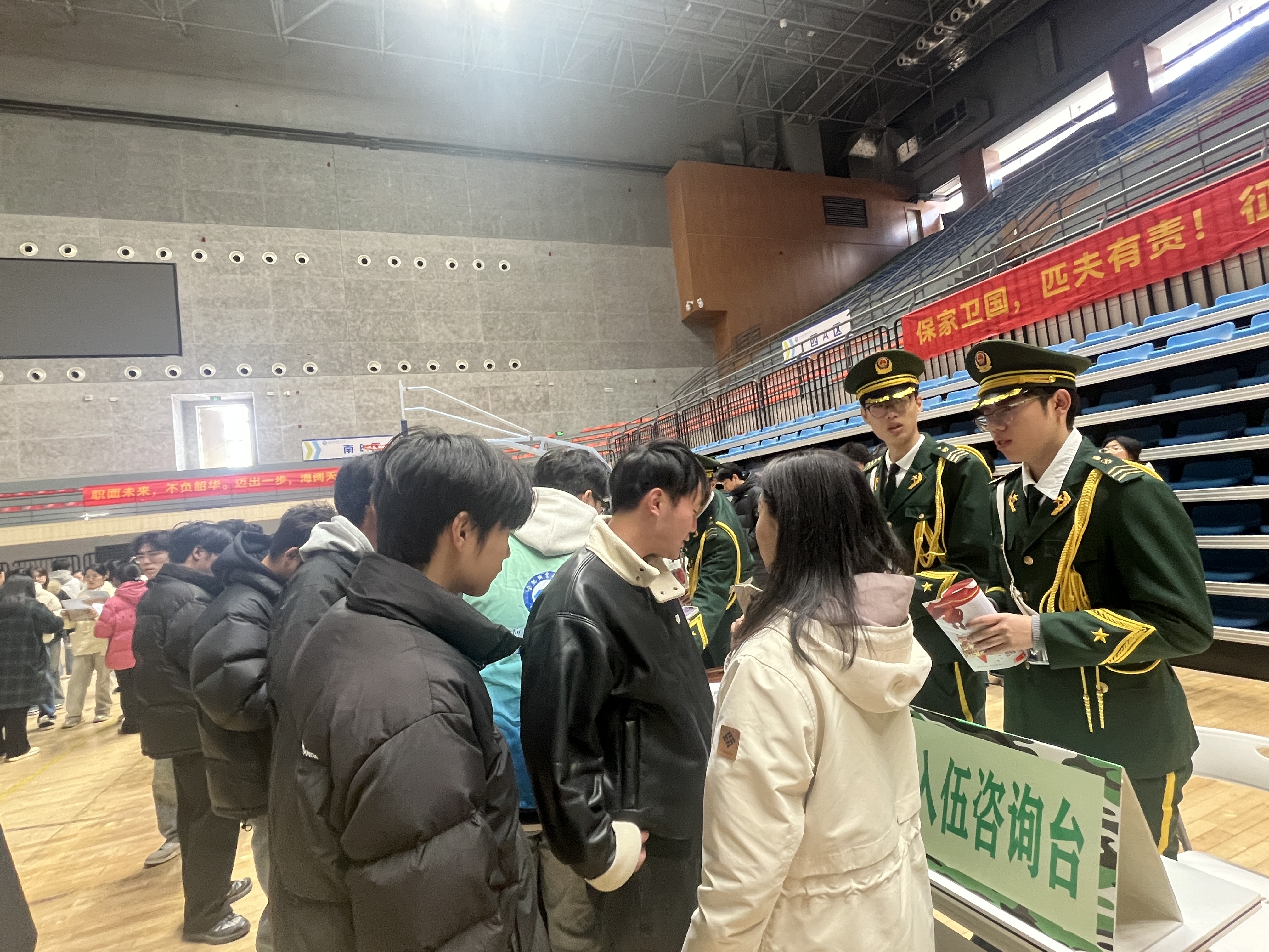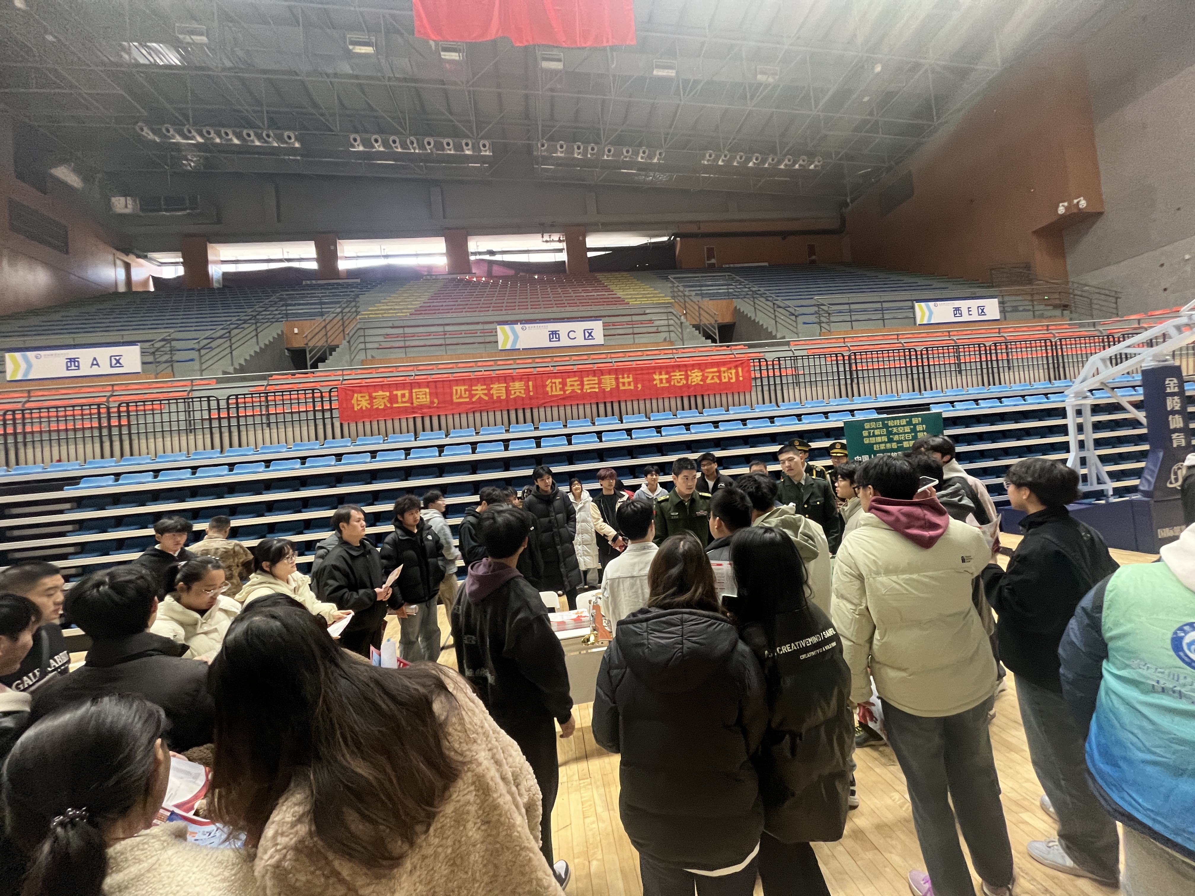 为扎实推进2026届毕业生就业工作,激发广大学子携笔从戎、报效国家的热情,11月19日下午,我校在汇心湖校区体育馆成功举办“2026届毕业生实习就业校园双选会”暨大学生应征入伍政策解答交流会。本次活动将就业服务与征兵宣传深度融合,为毕业生提供了“职场”与“战场”的双重选择。