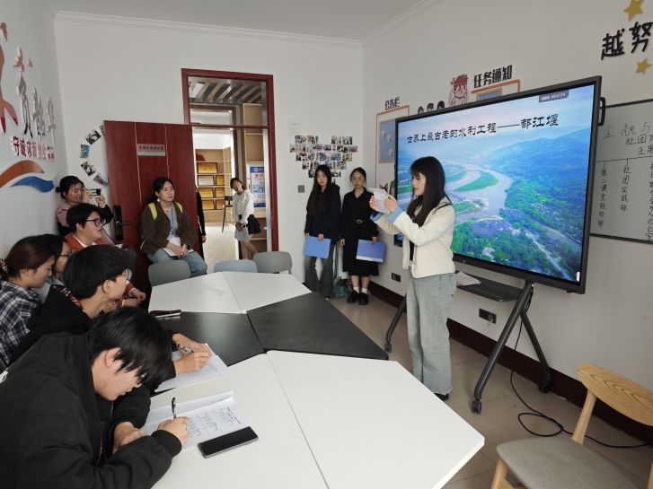 图1指导老师与学生干部在守诚学生工作驿站共商社区发展大计