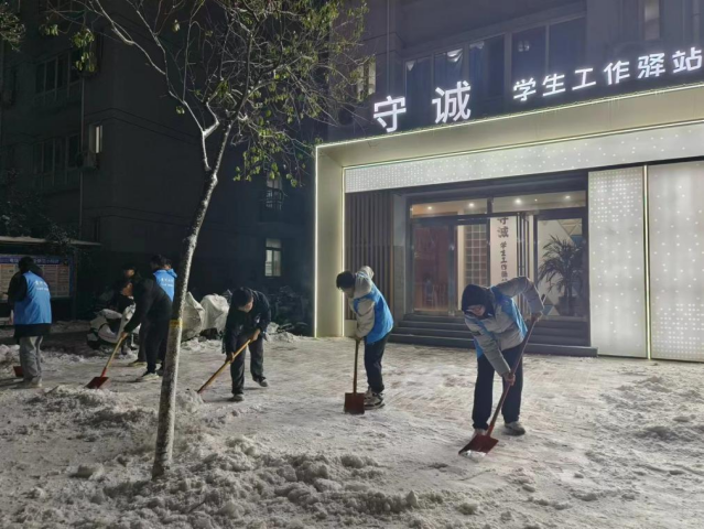 图4 金融与会计学院学生社区组织志愿者破冰铲雪活动