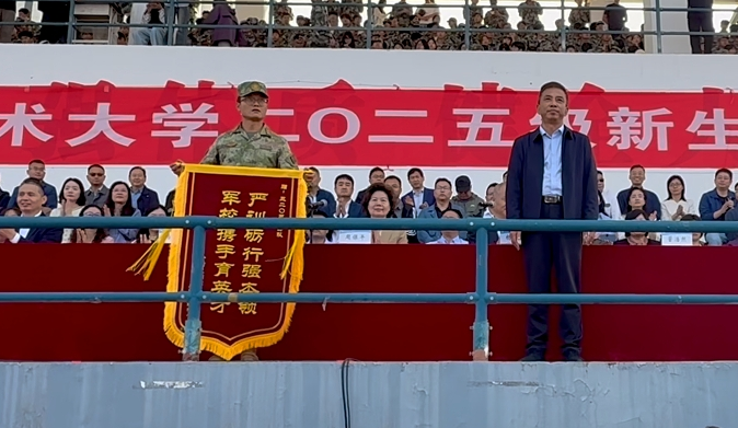 周保平结合军训的收获与黄河水利的育人初心,对2025级新生提出四点期望:一是坚定理想信念,传承黄水光荣传统。牢记习近平总书记对青年的嘱托,树立正确的理想、坚定的信念,从学校96年的奋斗足迹中汲取力量,把个人理想与国家需求紧紧绑定,用行动诠释“障颓波,挽狂澜”的气魄;二是适应大学节奏,练就过硬专业本领。要善规划、敢探索,尽快做好从“被动接受知识”转向“主动探索未知”、从“单一课本学习” 转向“综合能力提升”、从“松散时间管理”转向“自律自强成长”等三个转变,练就解决实际问题的过硬能力;三是严守纪律规矩,锤炼高尚道德品格。习近平总书记强调“国无德不兴,人无德不立”,需要大家从筑牢思想防线、严守学术诚信、涵养家国情怀三个方面筑牢“纪律防线”与“道德堤坝”,从入学之初就“扣好人生的第一粒扣子”。四是呵护身心健康,拥抱集体温暖生活。大学是学习专业知识的殿堂,也是“与自己相处、与他人同行”的课堂,要做好身心健康双守护,也要主动融入集体温暖氛围。