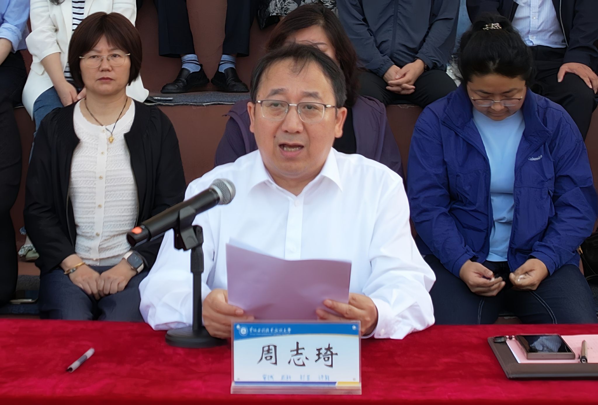 副校长周志琦教授宣读《关于表彰2025级新生军训先进集体和先进个人的决定》。