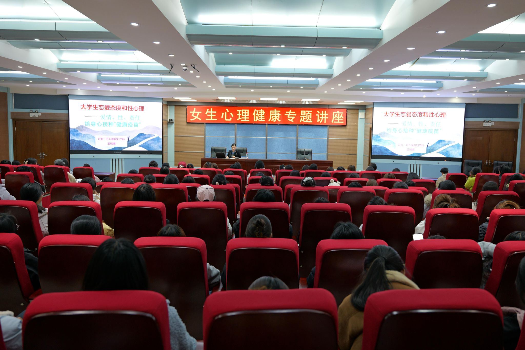 为切实加强大学生心理健康与生理健康教育,引导女生树立科学的恋爱观、性观念,掌握自我保护技能,11月25日,我校特邀开封市一五五医院质量管理科王瑞娜医生开展“给身心接种健康疫苗”专题讲座。各学院200余名女生聆听了讲座。