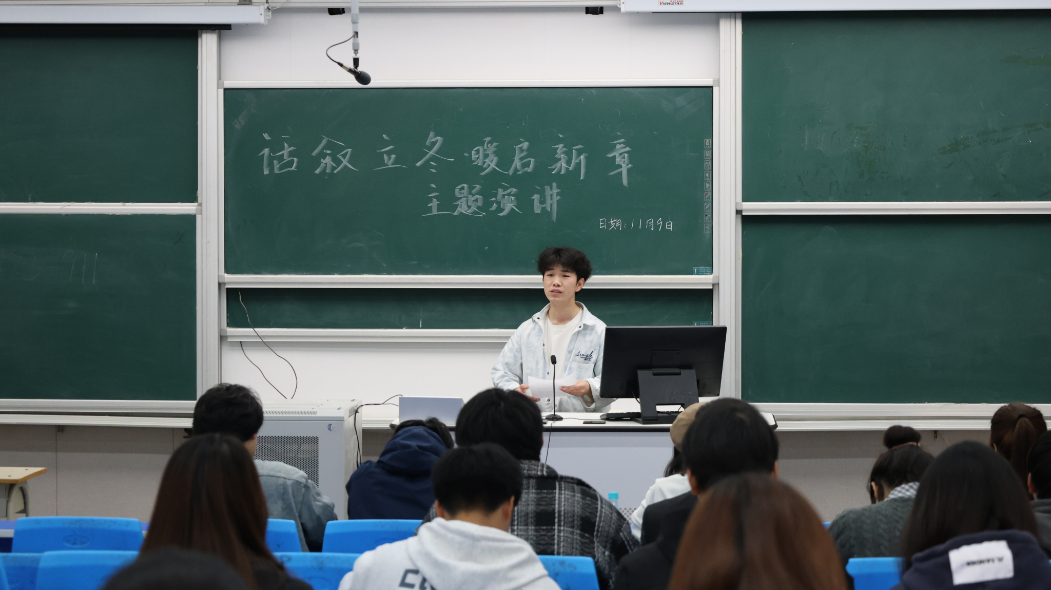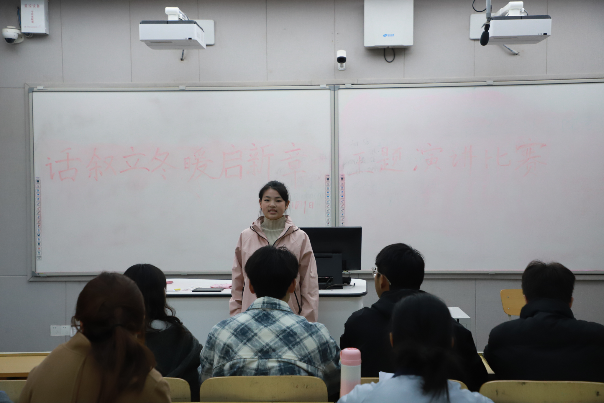 11月9日下午,“话叙立冬·暖启新章”主题演讲比赛在JX2102教室举行。参赛选手围绕节气文化与人生感悟展开精彩分享,或引经据典娓娓道来,或结合生活畅谈体会。现场金句频出、掌声不断,在思维碰撞与情感共鸣中,为冬日校园注入独特温暖与活力。比赛充分展现了同学们的演讲才华与思辨能力,进一步深化了大家对传统文化与人生价值的理解。