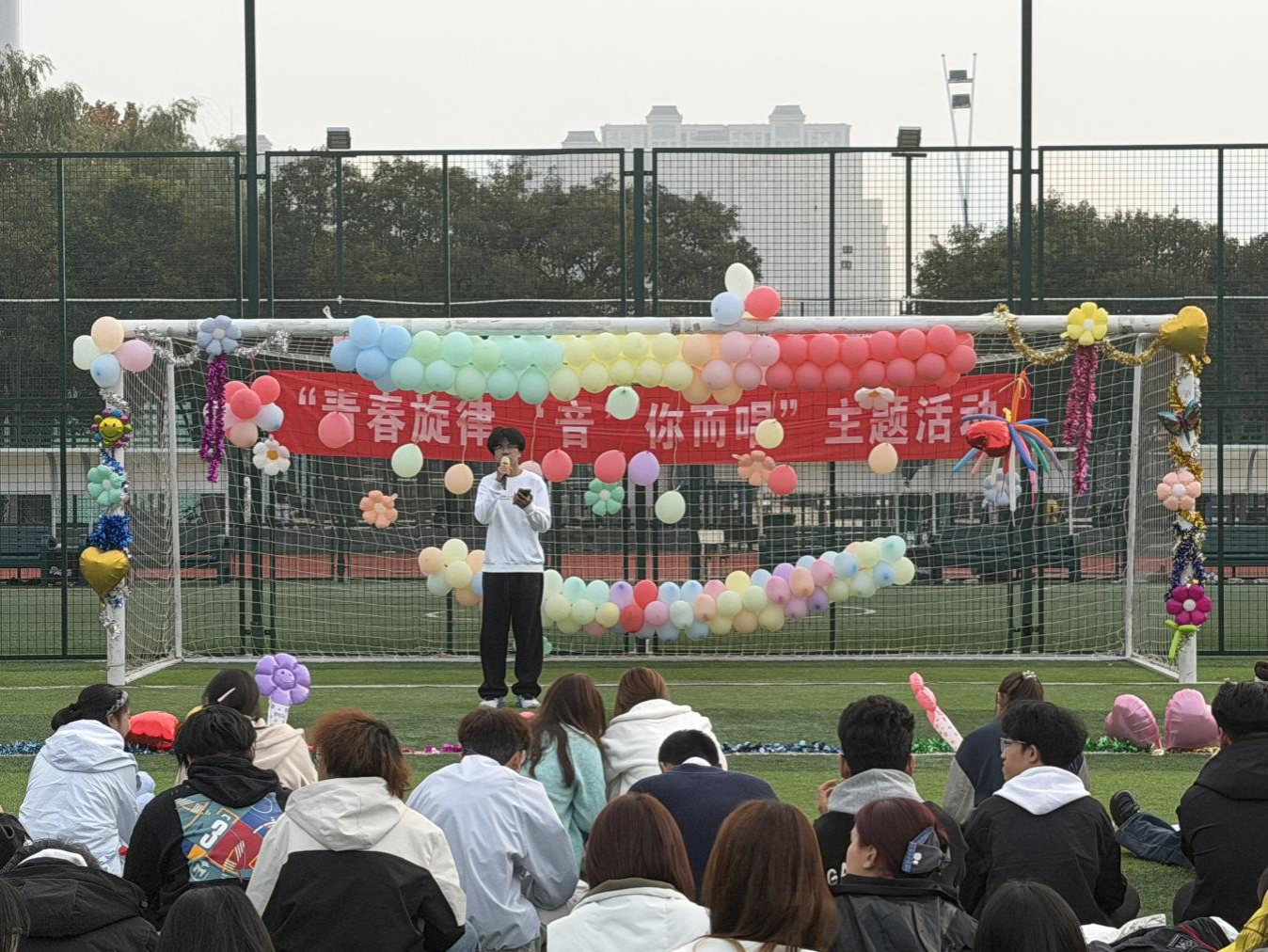 11月8日下午,五环体育场气氛热烈,“青春旋律‘音’你而唱”活动活力开启。活动以歌唱表演与趣味互动为主线,学生们踊跃登台,呈现了独唱、合唱等多种形式的精彩演绎,一首首经典曲目回荡校园。现场掌声不断、喝彩连连,同学们以嘹亮歌声唱出新时代青年的理想与担当,在旋律中凝结情感、绽放才华,有效缓解了学业压力。