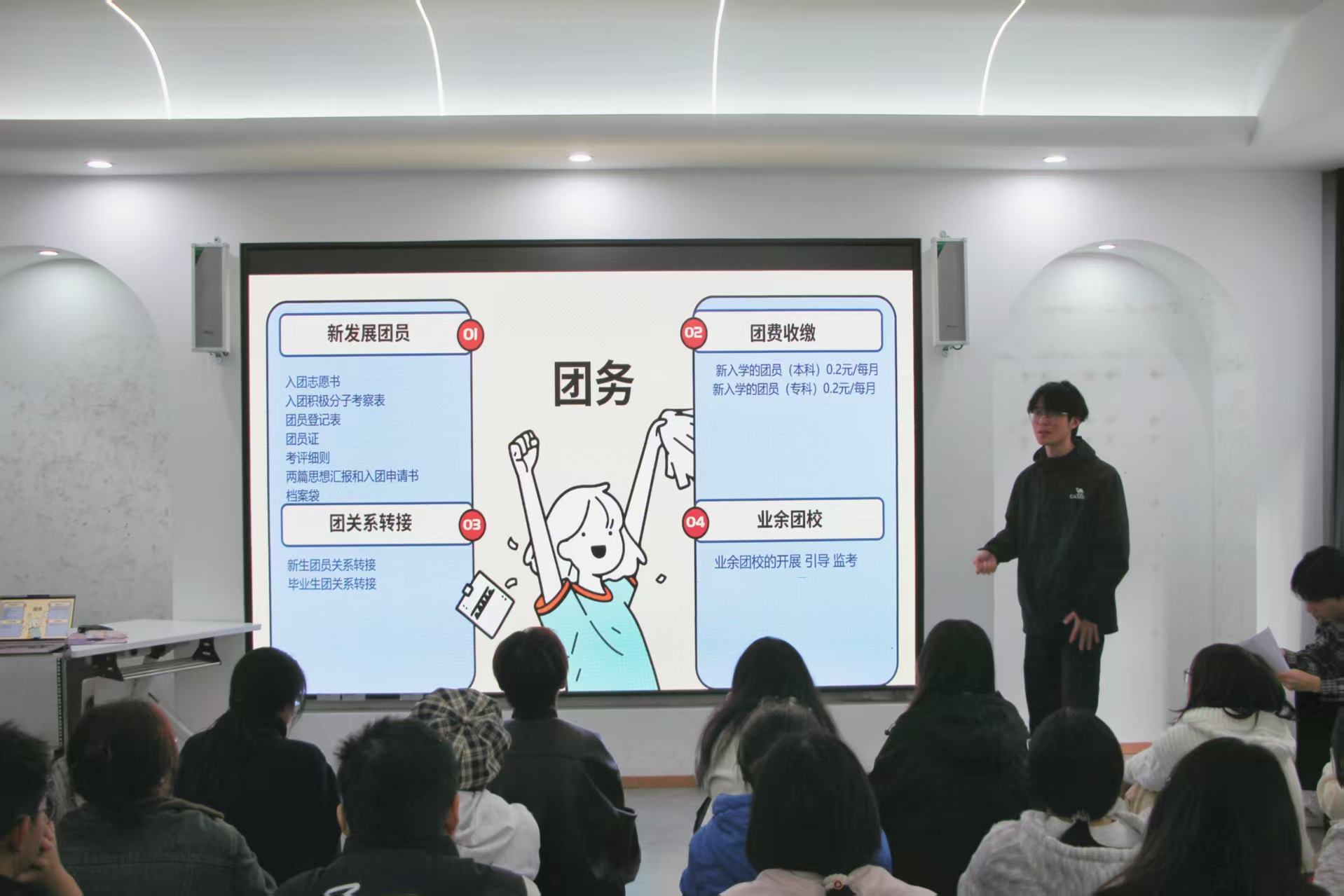 11月9日下午,“青声话团务,力行显担当”团支书沙龙活动在13号宿舍楼学生心理社区顺利举办,25级新生团支书齐聚一堂。花式自我介绍打破陌生感,拉近彼此距离;“快问快答”环节通过团章、校史知识问答赢取文创好礼,点燃参与热情;“赋能充电”环节详解“三会两制一课”、新团员发展、团费收缴等团务知识,助力团支书高效履职。现场学长学姐与新手团支书畅聊工作困惑、共话发展计划,活动在温馨热烈的氛围中落下帷幕。