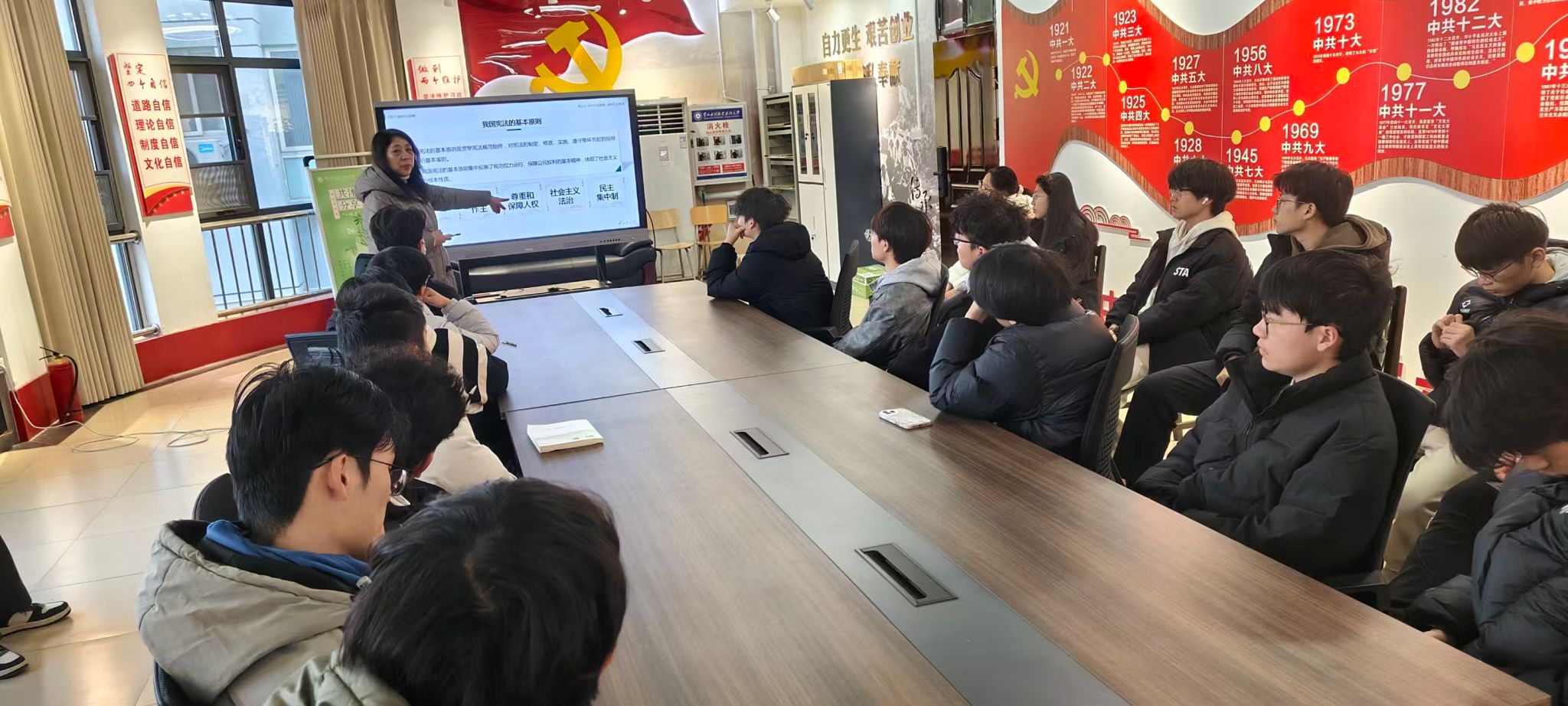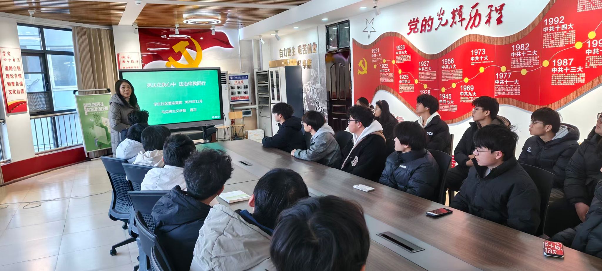 为进一步强化学生的宪法意识与法治观念,使法治精神融入校园生活,“一站式”学生社区党工委于12月29日邀请思政导师邵卫老师走进学生社区,开展了一场以“宪法在我心中 法治伴我同行”为主题的课堂。
