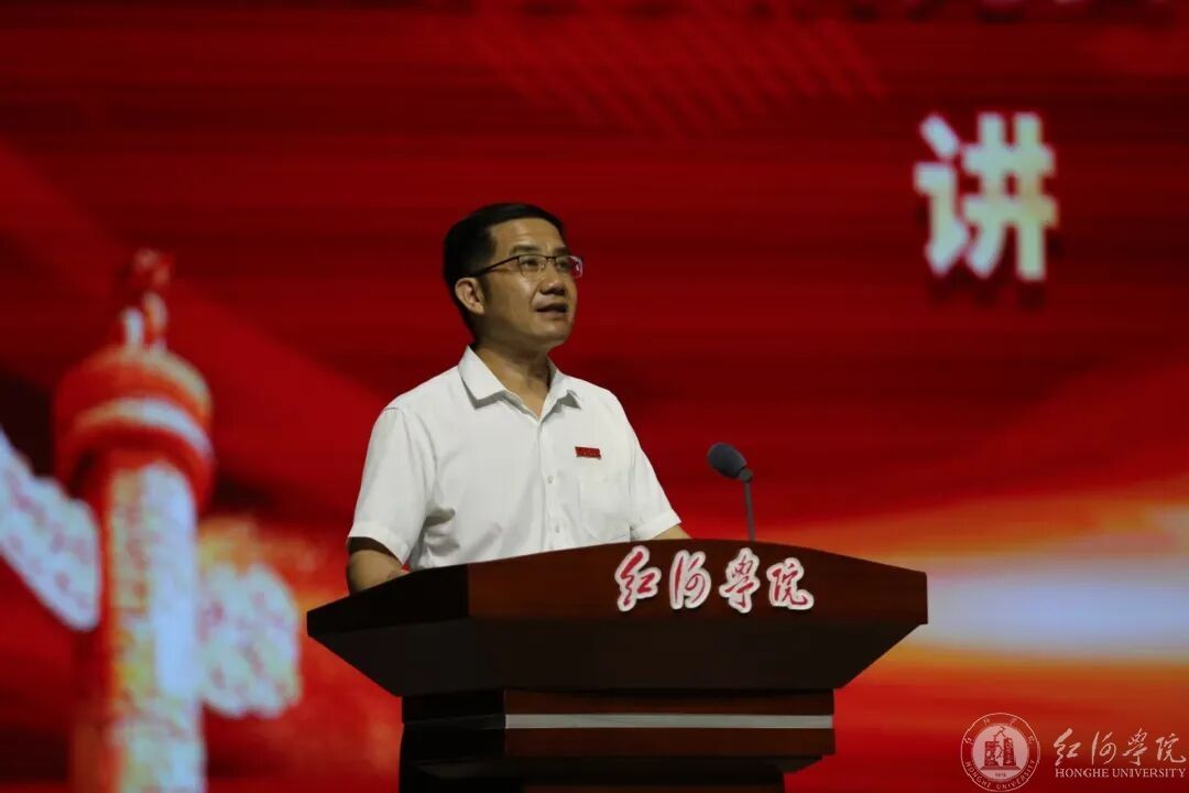 9月15日下午,红河学院在学生活动中心隆重举行2025年秋季大学生应征入伍欢送仪式,为20名即将奔赴军营的学子送行。校党委书记洪波,校党委委员、副校长安镇宙,校党委委员、宣传部部长杨申宣,校党委委员、组织部部长朱欣出席活动,各学院师生代表、入伍学生家长及退役复学学生共同见证了这一庄严时刻。