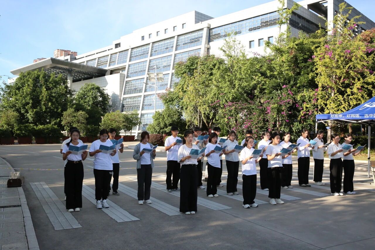 音乐舞蹈学院前,学子们带来独具特色的民族舞蹈,灵动的舞姿、绚丽的服饰,将民族文化的魅力与青春活力完美融合。