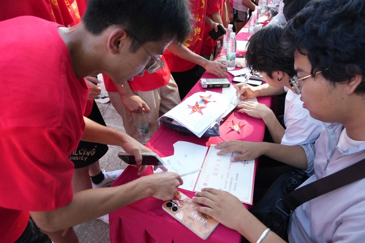 活动全程,志愿者、红院融媒、有鸣融媒的同学们始终坚守岗位、无私奉献。赛道旁,他们用最热情的声音为学子们加油助威;补给点内,他们有条不紊地分发饮用水与能量物资,用细致的服务为奔跑保驾护航,成为赛道上一道温暖的风景线。