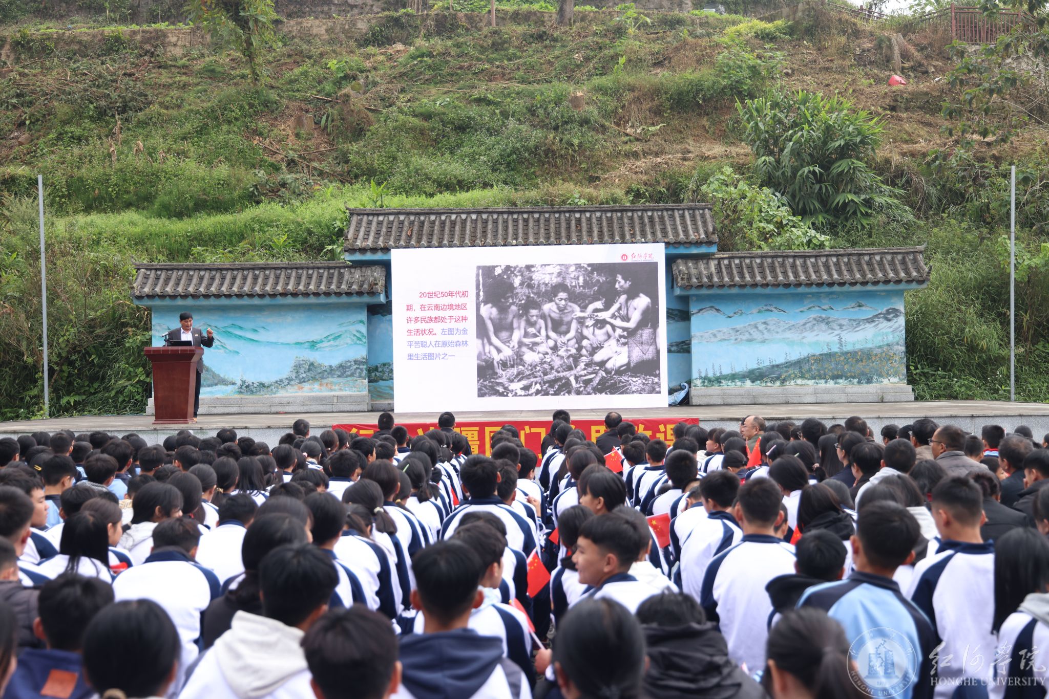 为深入学习贯彻落实党的二十届四中全会精神和习近平总书记考察云南系列重要讲话精神,推动思政“小课堂”与社会“大课堂”深度融合,10月27日,红河学院赴金平县马鞍底乡开展国门大中小学思政教育一体化共同体建设系列活动。红河学院党委书记洪波,党委副书记赵汝杰、章良为,金平县委常委、统战部部长、马鞍底乡党委书记董春进,金平县委教育工委以及红河学院、金平县马鞍底乡相关人员、马鞍底乡中小学师生代表等共计800余人参加了此次活动。