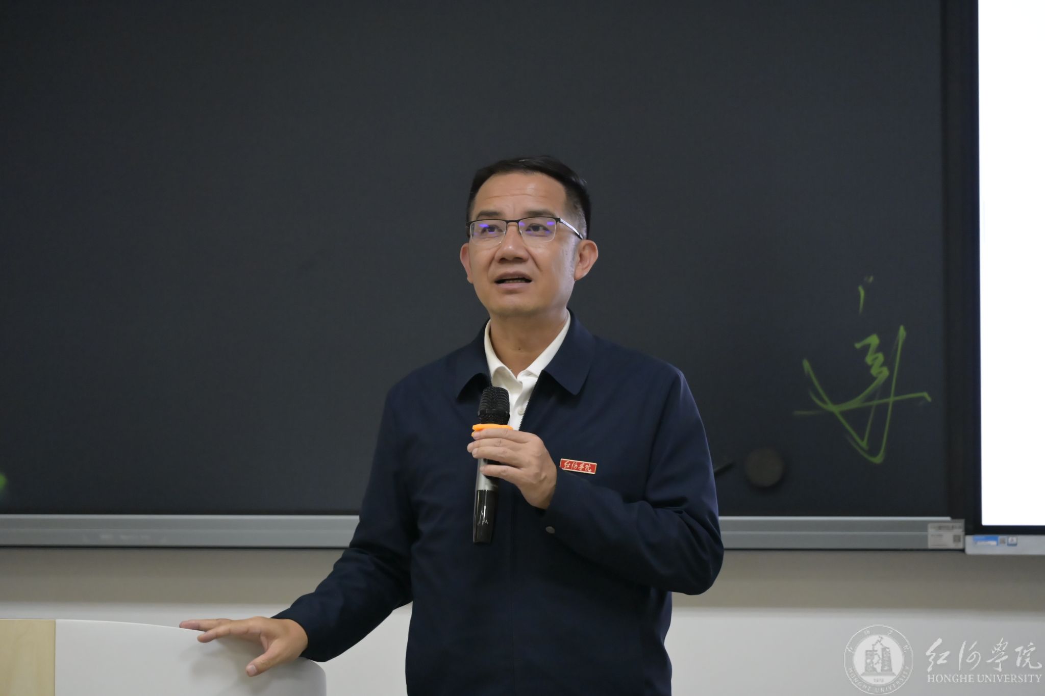 在首次授课中,洪波围绕“社会主义现代化建设的教育、科技、人才战略”主题,结合2025年国内外时事热点,系统阐释了教育强国、科技自立自强与人才驱动的内在联系。他带领同学们一起回顾了中华民族的崛起历史,重温一代代先烈与仁人志士共建祖国的峥嵘岁月,将民族集体记忆转化为思政教育的“情感催化剂”,强调青年学子需将个人学业融入国家发展大局,引导学生修好品德、求好学业,厚植家国情怀。