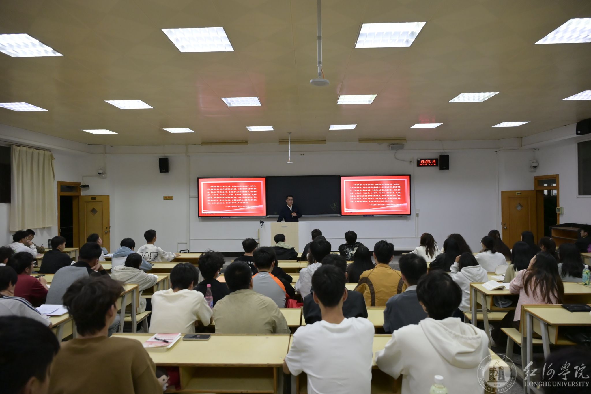 10月23日与30日,校党委书记洪波在文鼎楼108教室先后为本科生讲授了两场专题思政课。