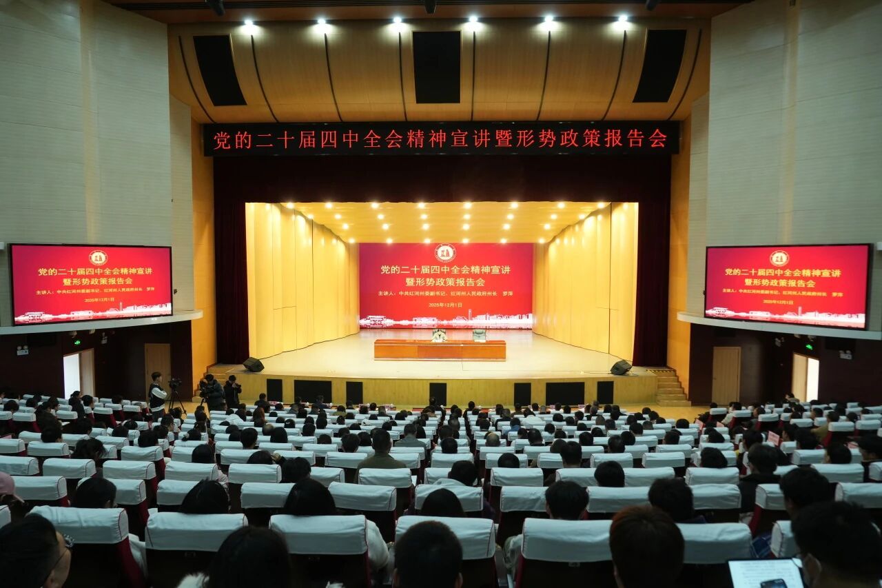 此次报告会是红河学院学习贯彻党的二十届四中全会精神的关键举措,既为师生搭建了“懂政策、明方向”的学习平台,也推动了全会精神真正进校园、进课堂、进头脑。下一步,学校将以此次宣讲为契机,深化校地协同,加速“科技服务红河行动计划”落地,引导师生扎根边疆、服务地方,以实干实绩为红河州的现代化建设贡献学院力量。