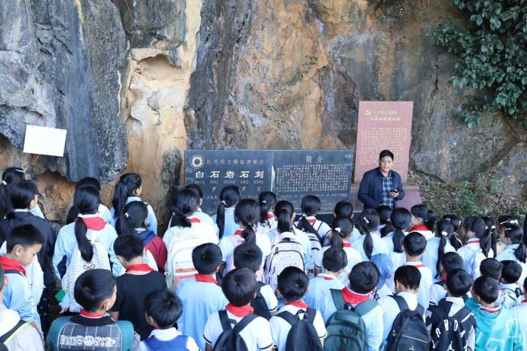 “80多年前,这里的军民手拉手挡住日寇,今天我们守护的不仅是界碑,更是先辈用生命换来的和平!”在“抗日必胜”石刻前,杨教授蹲下身子为小学生讲解历史;中学生化身“小讲解员”,帮低年级同学梳理革命故事;支教大学生用手机播放历史影像,让厚重历史“活”起来。“摸到石刻上的字,好像听到先辈的呐喊。”国门小学六年级学生邓佳蕊攥着小红旗说。